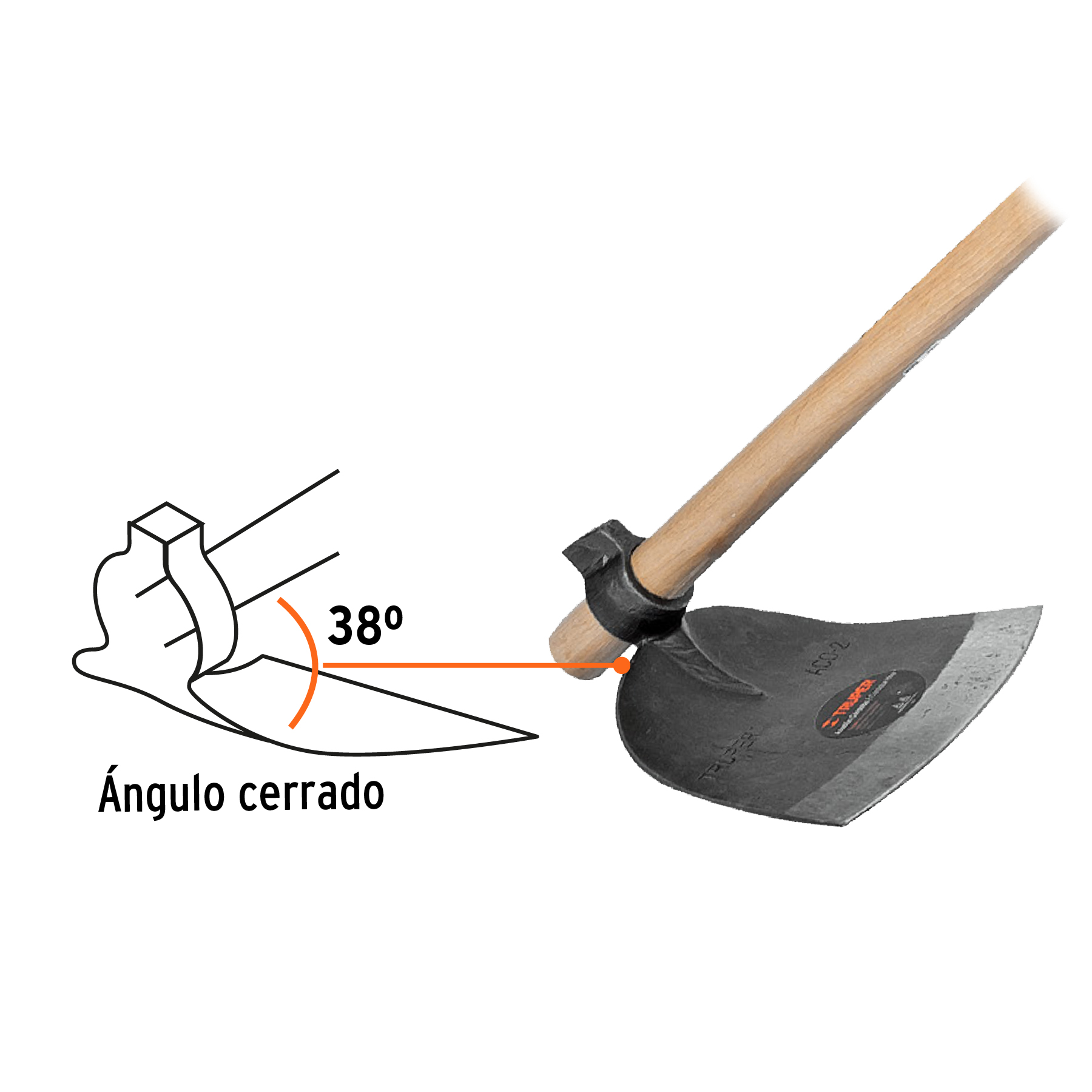 Azadón forjado en una sola pieza, con nervio central para mayor resistencia y menor vibración. Ideal para romper terrones y preparar el terreno para la siembra, es perfecto para uso agrícola y hortícola, especialmente en el sureste de México.