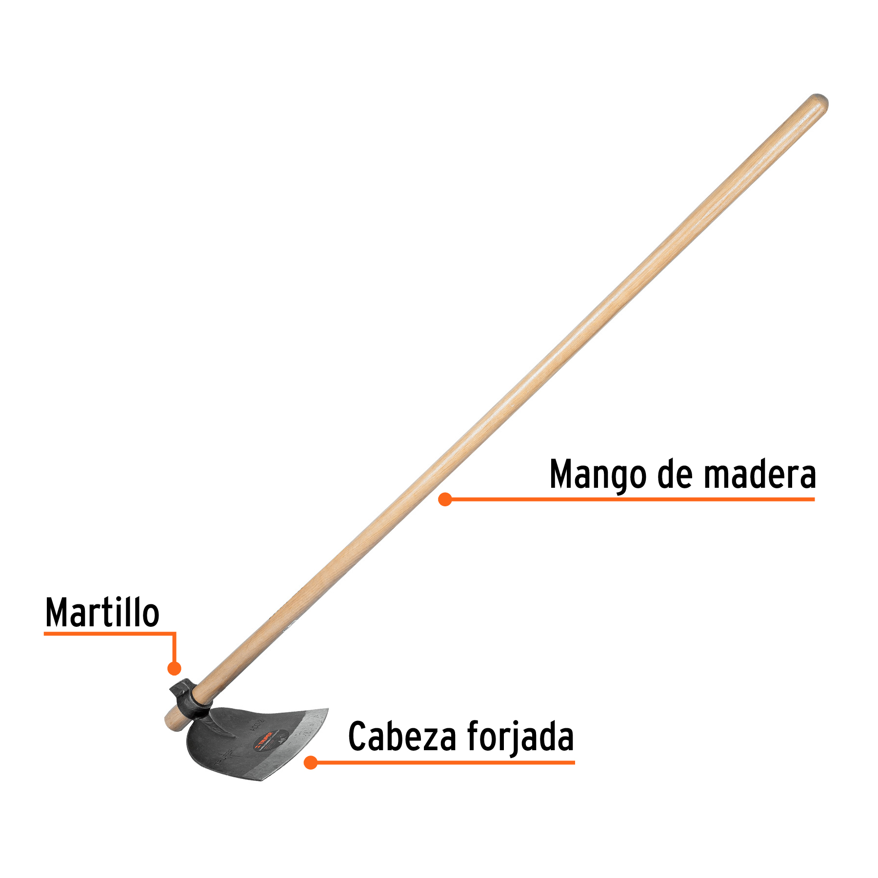 Martillo forjado en una sola pieza, con nervio central que proporciona mayor resistencia al impacto y reduce la vibración. Su acabado pulido y preafilado garantiza un uso eficiente y duradero. Ideal para romper terrones y preparar el terreno para la siembra, es perfecto para trabajos agrícolas y hortícolas. Usado principalmente en el sureste de México, como Puebla, Veracruz, Oaxaca, Chiapas y Yucatán, es una herramienta esencial para el trabajo en el campo.