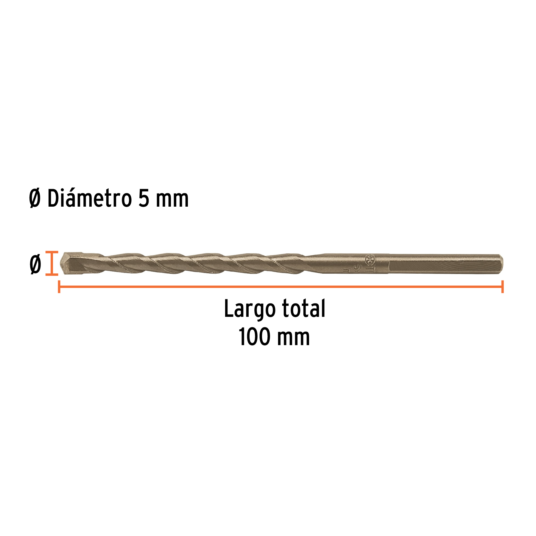 Broca para concreto Truper 5 x 100 mm: Perfecta para perforaciones precisas y duraderas en materiales de construcción como concreto, ladrillo y bloque. Fabricada con acero al cromo de alta resistencia y punta de carburo de tungsteno para máxima durabilidad y rendimiento. ¡Ideal para trabajos de albañilería, remodelación y más!