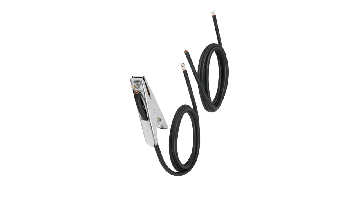Cable para soldadora SOT-300/250X con pinza de tierra, resistente y eficiente para conexiones seguras.