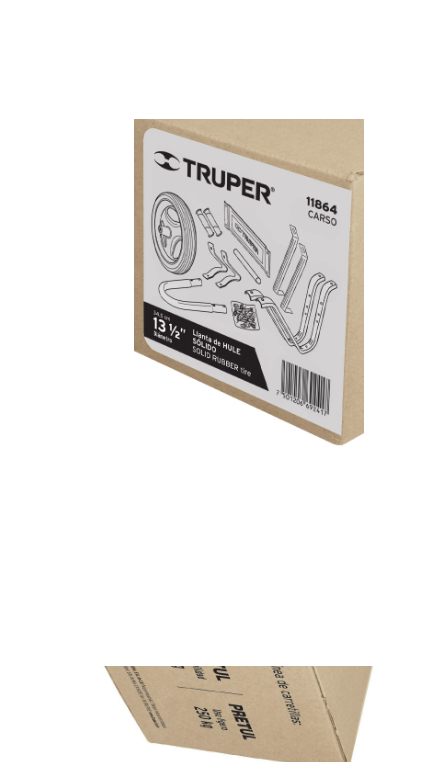 Especificación: Caja c/llanta hule sólido y accesorios p/carretilla Truper