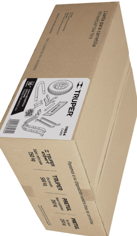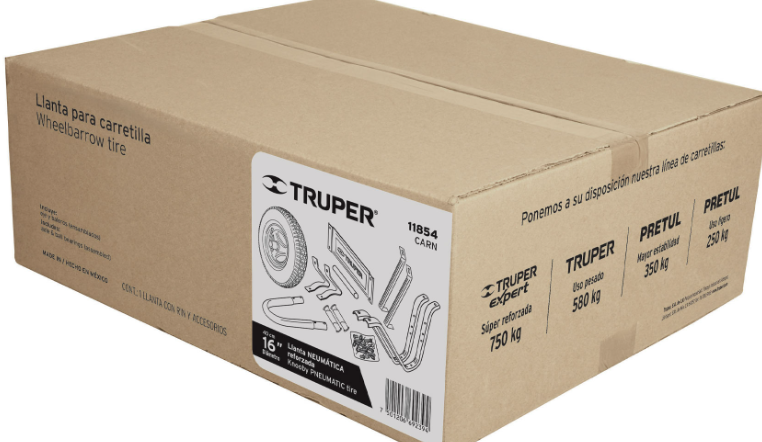 Especificación: Caja c/llanta neumática y accesorios p/carretilla Truper