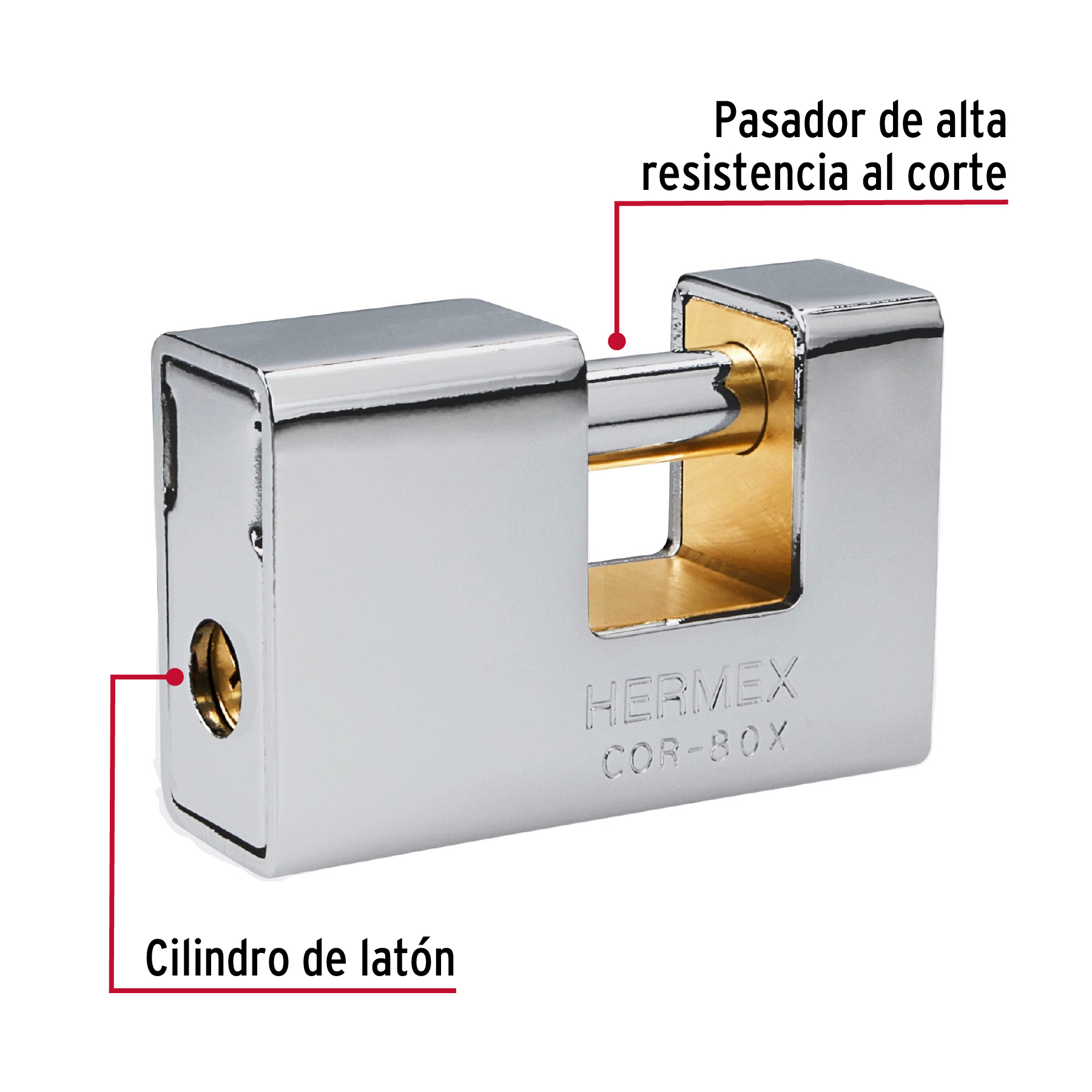 Especificación: Candado antipalanca, 80mm, blindado, llave tetra, Hermex