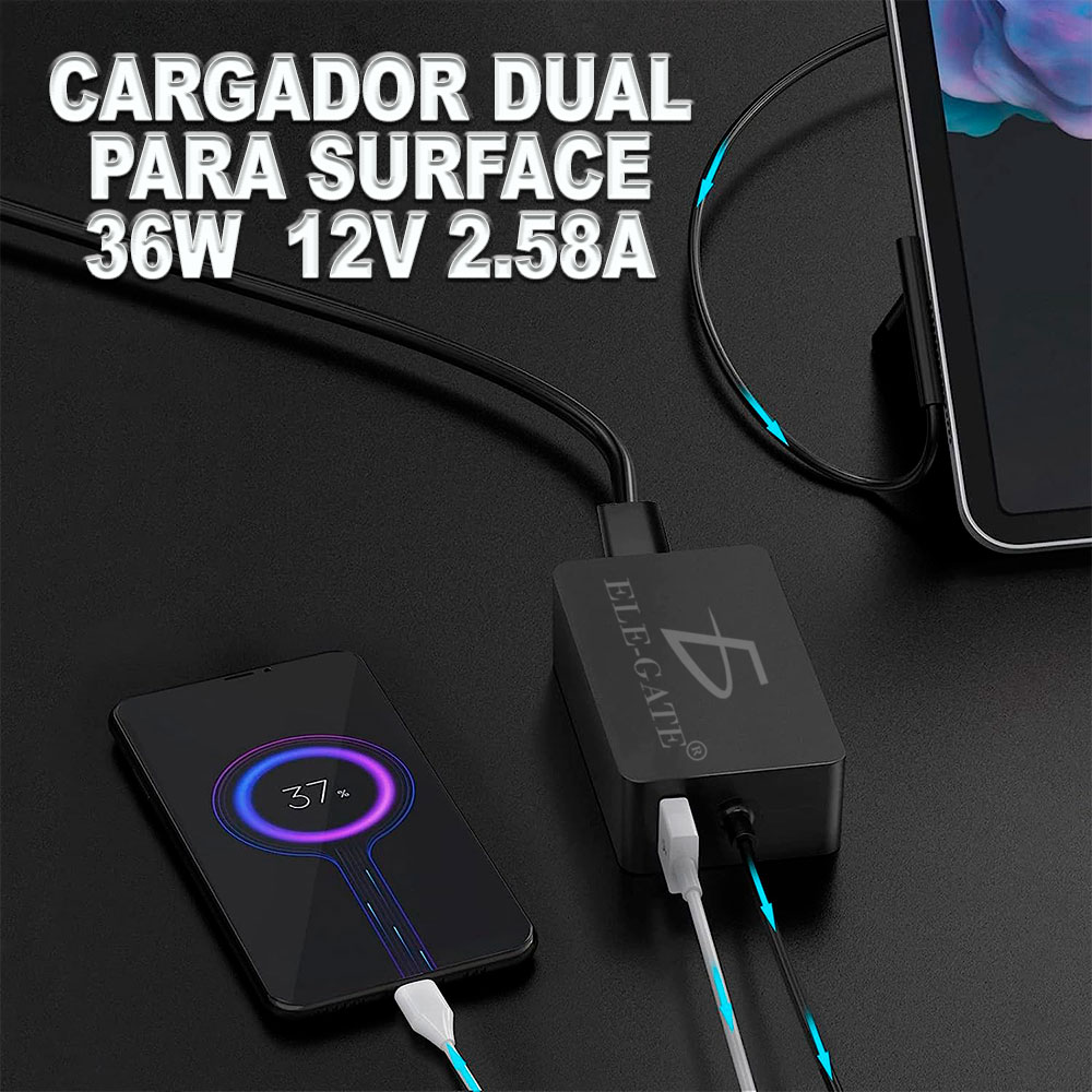 Este cargador para tu Microsoft Surface ofrece una potencia de 36W y una corriente de 2.58A a 12V, garantizando una carga rápida y eficiente. Viene con un puerto USB adicional que te permite cargar otro dispositivo, como tu teléfono, simultáneamente. Este cargador es la solución perfecta para mantener todos tus dispositivos cargados y listos para usar.