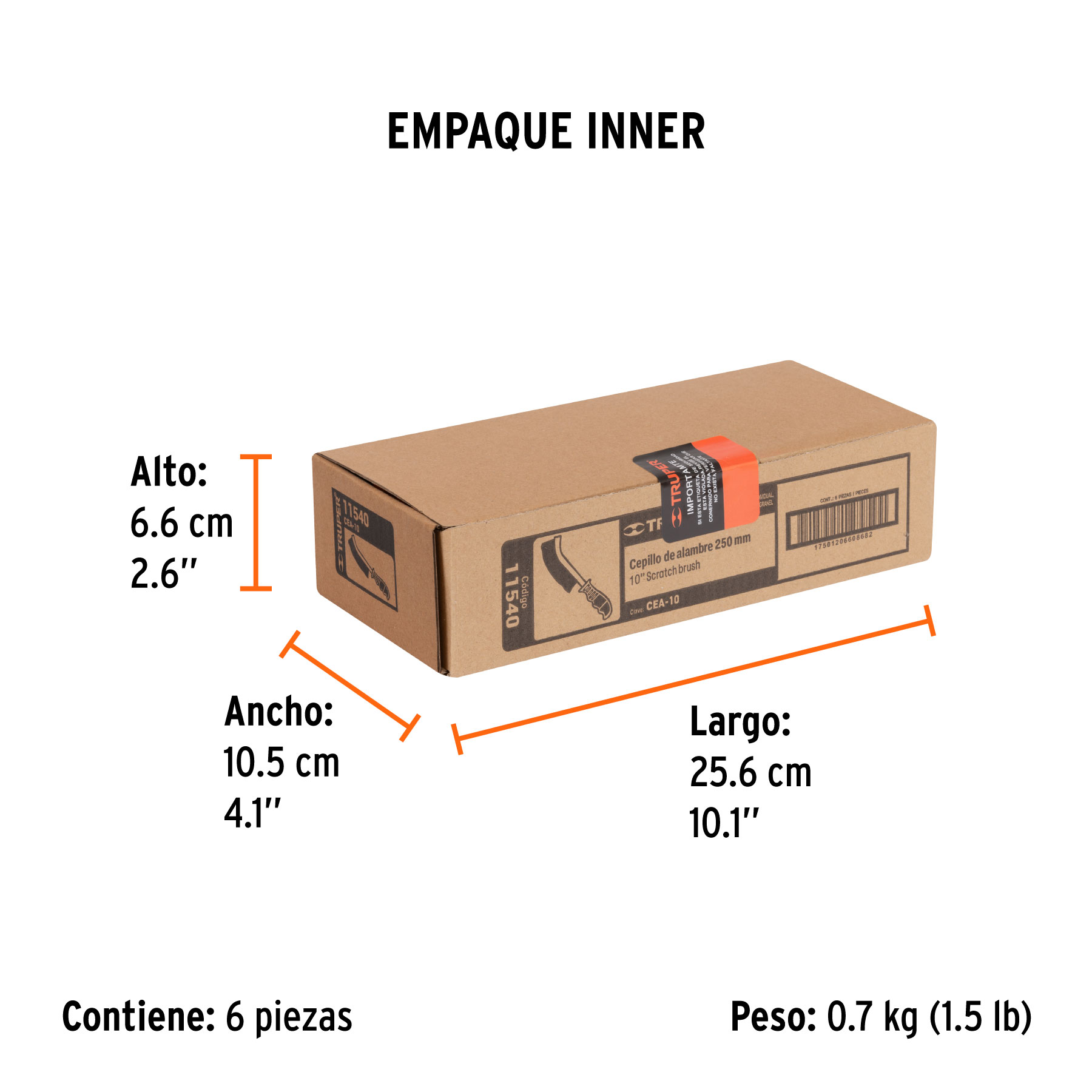 Cepillo industrial curvo anti-chispa con cerdas de acero latonado. Diseñado para aplicaciones que requieren reducción de estática. Ideal para limpieza y desbarbado de metales y otros materiales en ambientes con riesgo de explosión.
