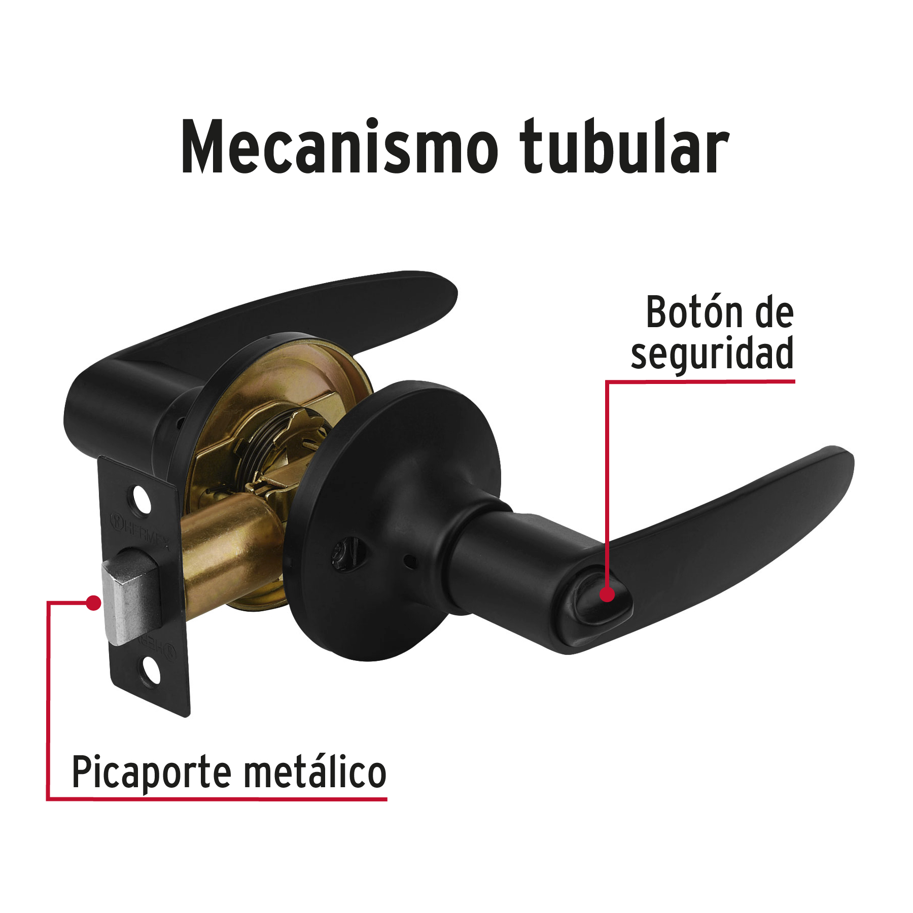 Cerrojo con llave al exterior y botón de seguridad al interior, Mecanismo tubular con cilindro de latón sólido, Para colocación en puertas derechas o izquierdas de 1-1/4″ a 1-3/4″ (32 a 45 mm), llave tradicional