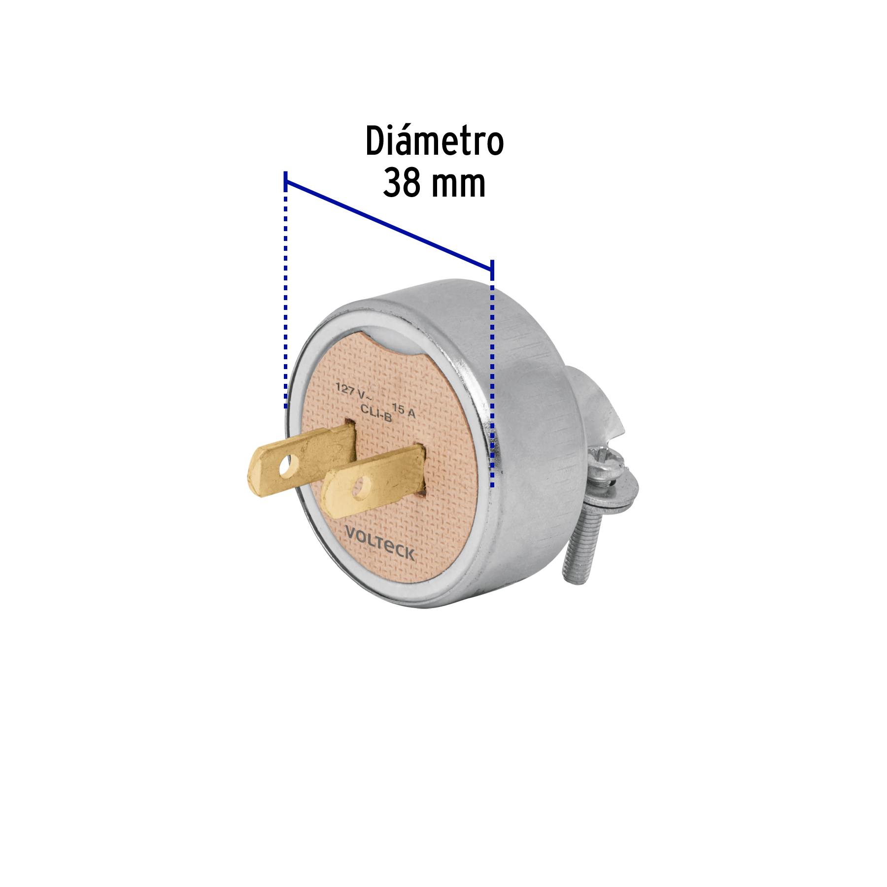 Tensión / Corriente: 127 V / 15 A, Fabricada de polipropileno y acero con acabado galvanizado, Terminales fabricados en aleación de cobre, Cuenta con abrazadera para asegurar la fijación del cableado