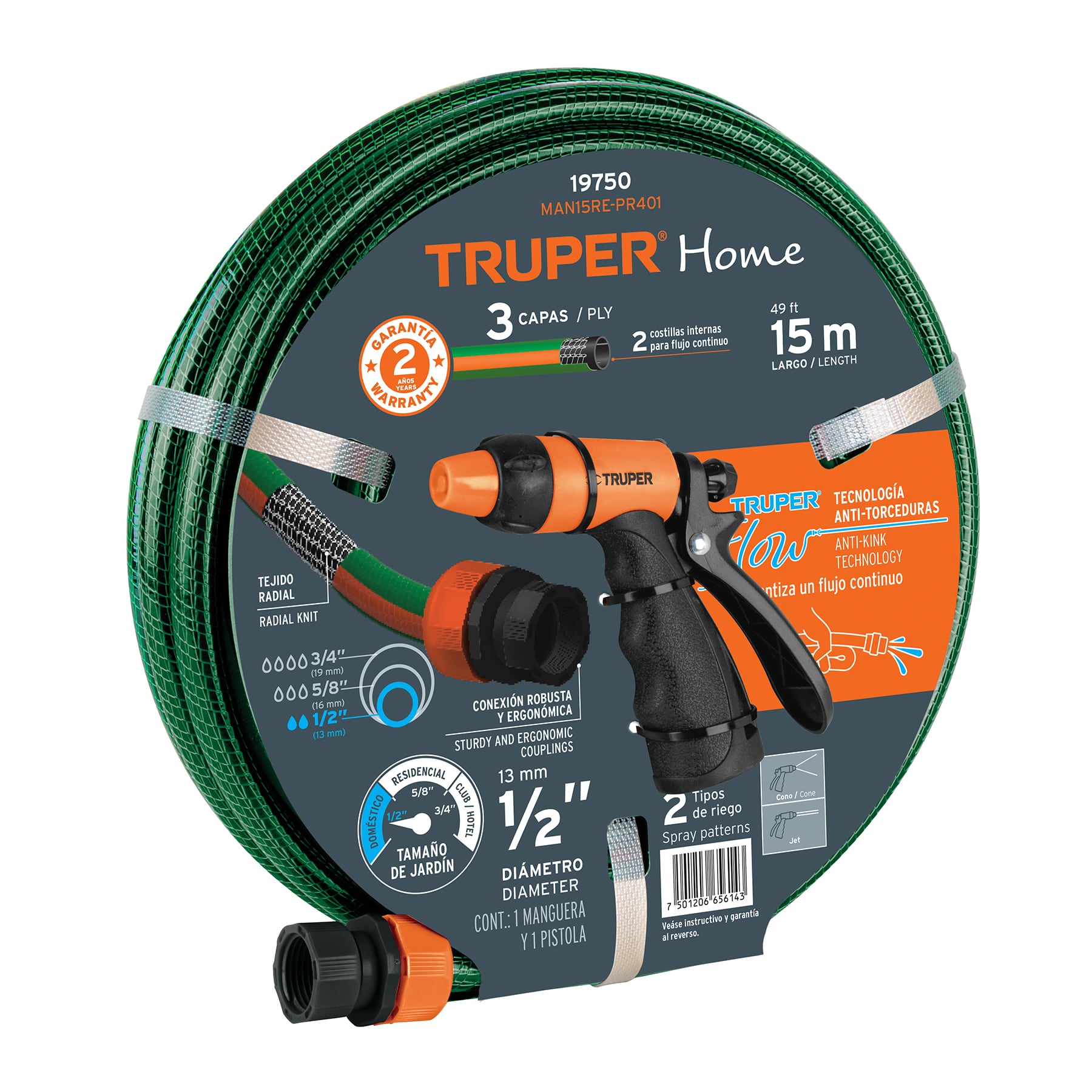 Especificación: Combo manguera MAN-15X1/2RE y pistola de riego PR-401