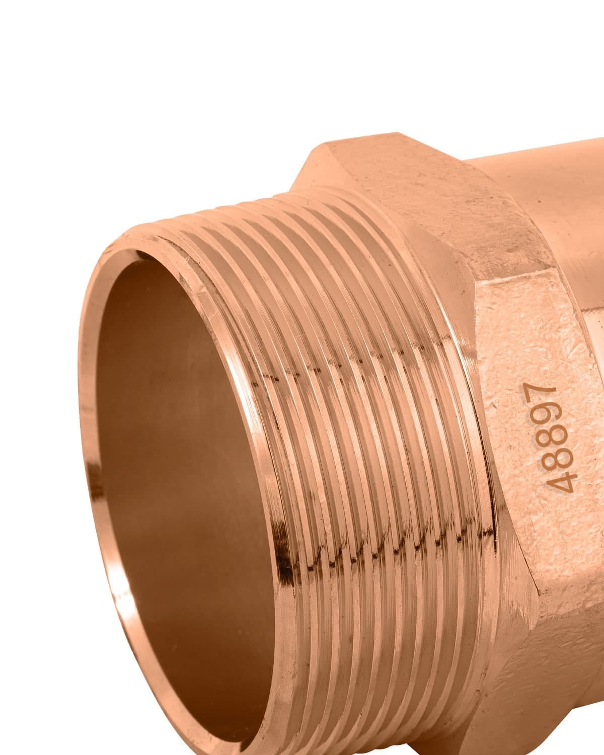 Cuerpo de latón cobrizado resistente a la corrosión y al torque, Pared lisa interior que reduce la pérdida de presión por fricción, Larga vida útil, Para la conducción de agua fría y caliente o instalaciones de gas natural y L.P.