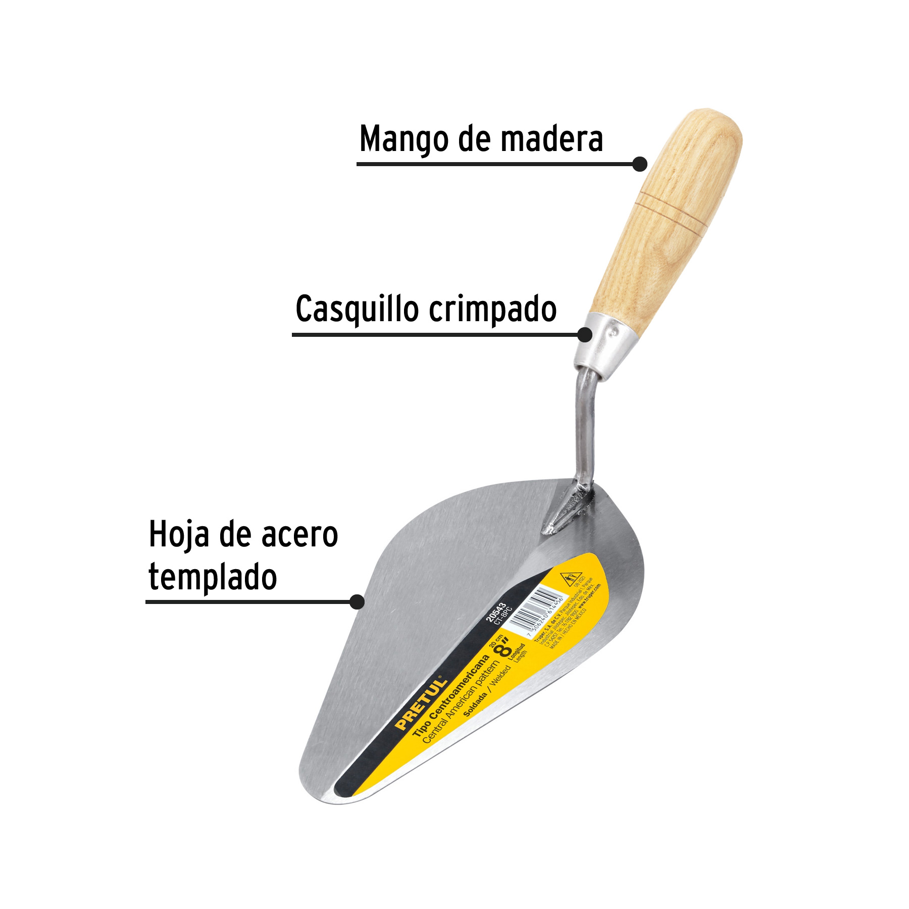 La Cuchara para Albañil Pretul de 8″ tipo Centroamericana es una herramienta de alta calidad diseñada para trabajos exigentes de albañilería. Su diseño tipo centroamericana permite una distribución eficiente y precisa de materiales como cemento y mortero, facilitando el trabajo en diversas superficies. Fabricada con acero resistente, esta cuchara ofrece gran durabilidad y resistencia al desgaste, lo que la convierte en una opción confiable para albañiles profesionales. Con un tamaño ideal de 8 pulgadas, es perfecta para tareas que requieren control y un acabado uniforme.