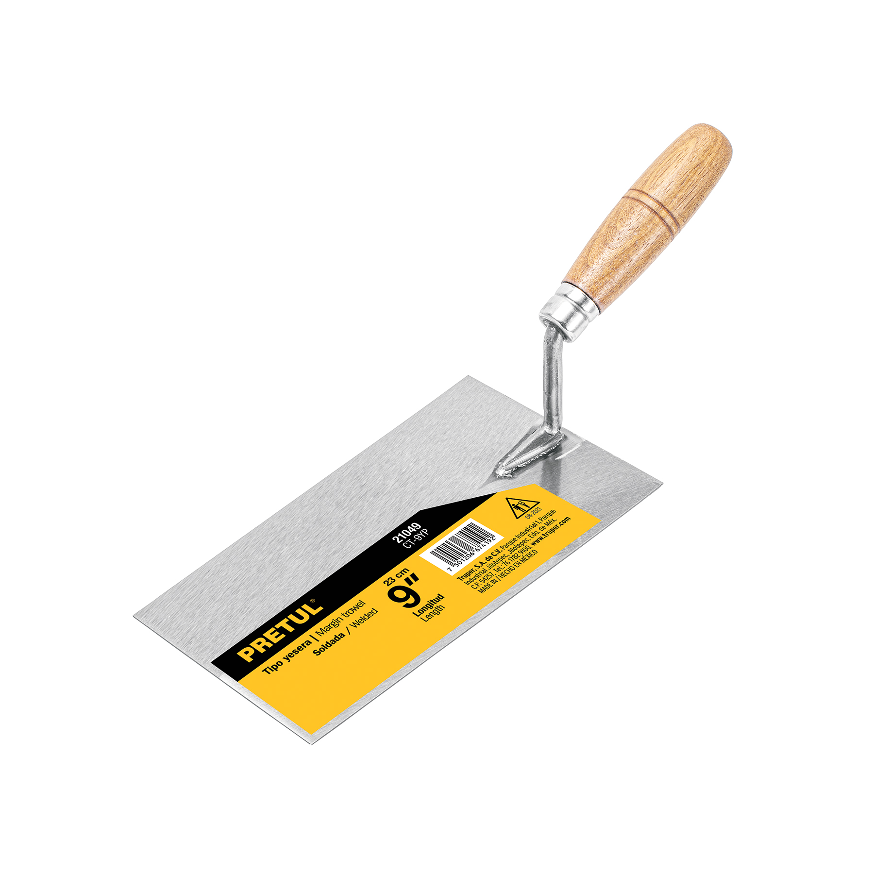 Cuchara yesera de 9” Pretul, resistente y precisa, ideal para acabados en albañilería.