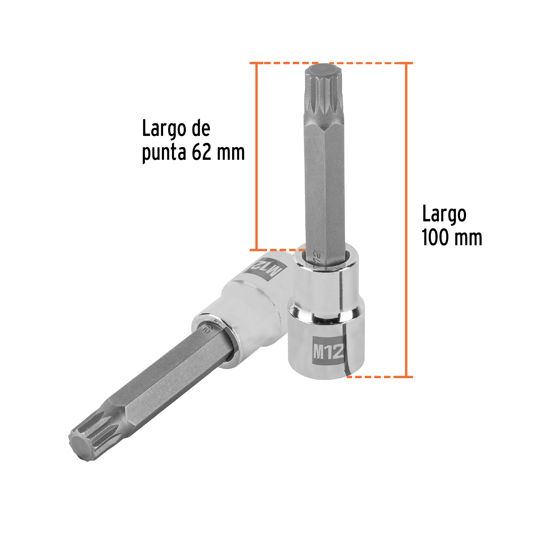 Especificación: Dado punta larga bristol M12, cuadro 1/2′, Truper