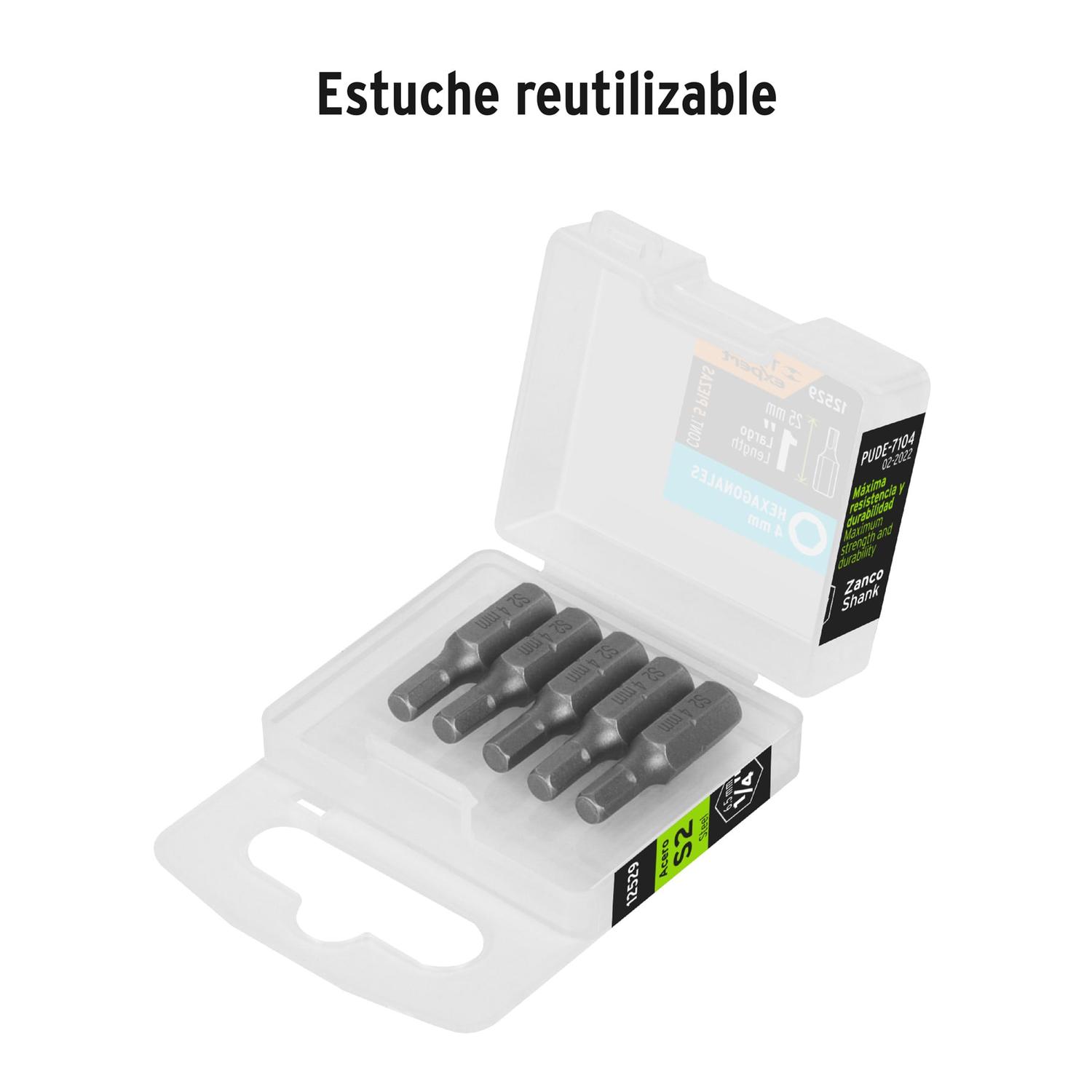 Especificación: Estuche con 5 puntas hexagonales de 4 mm largo 1′, Expert