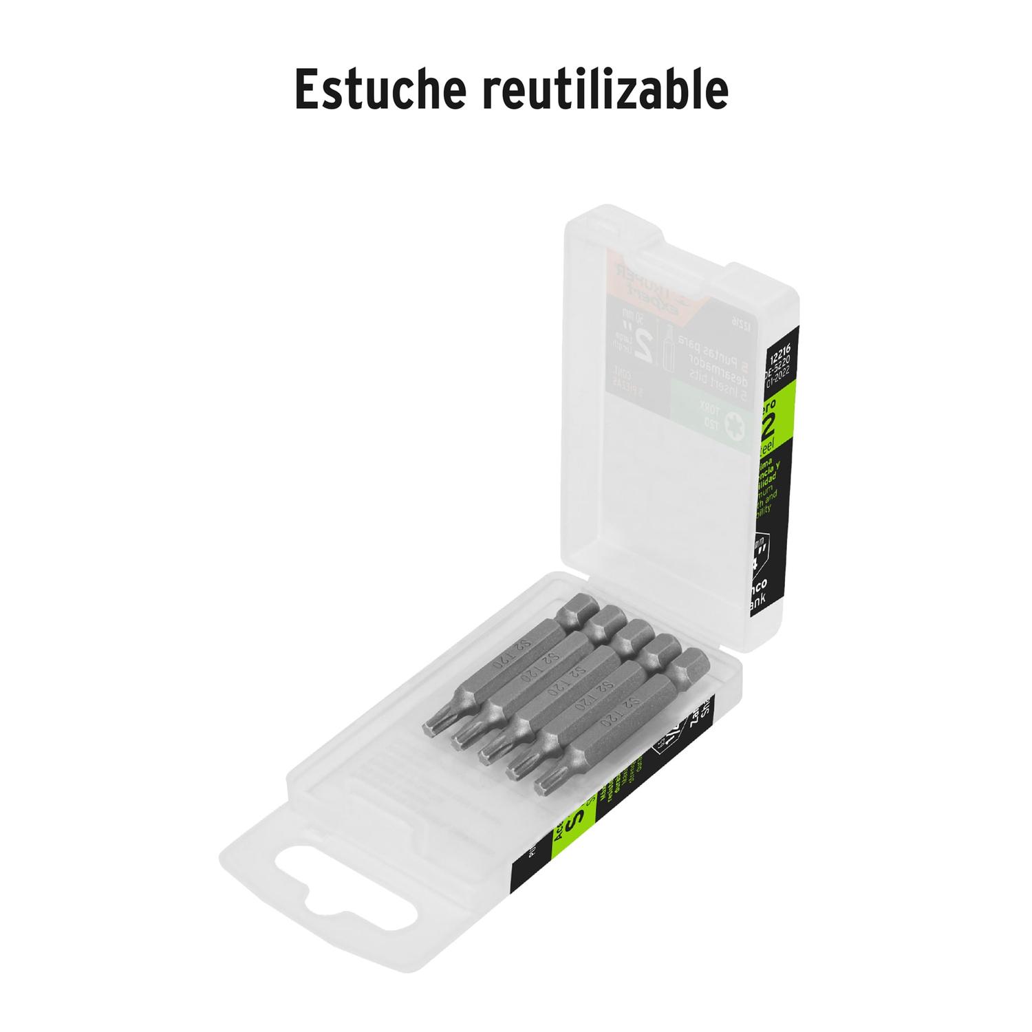 Estuche con 5 puntas torx T20 largo 2', Truper Expert