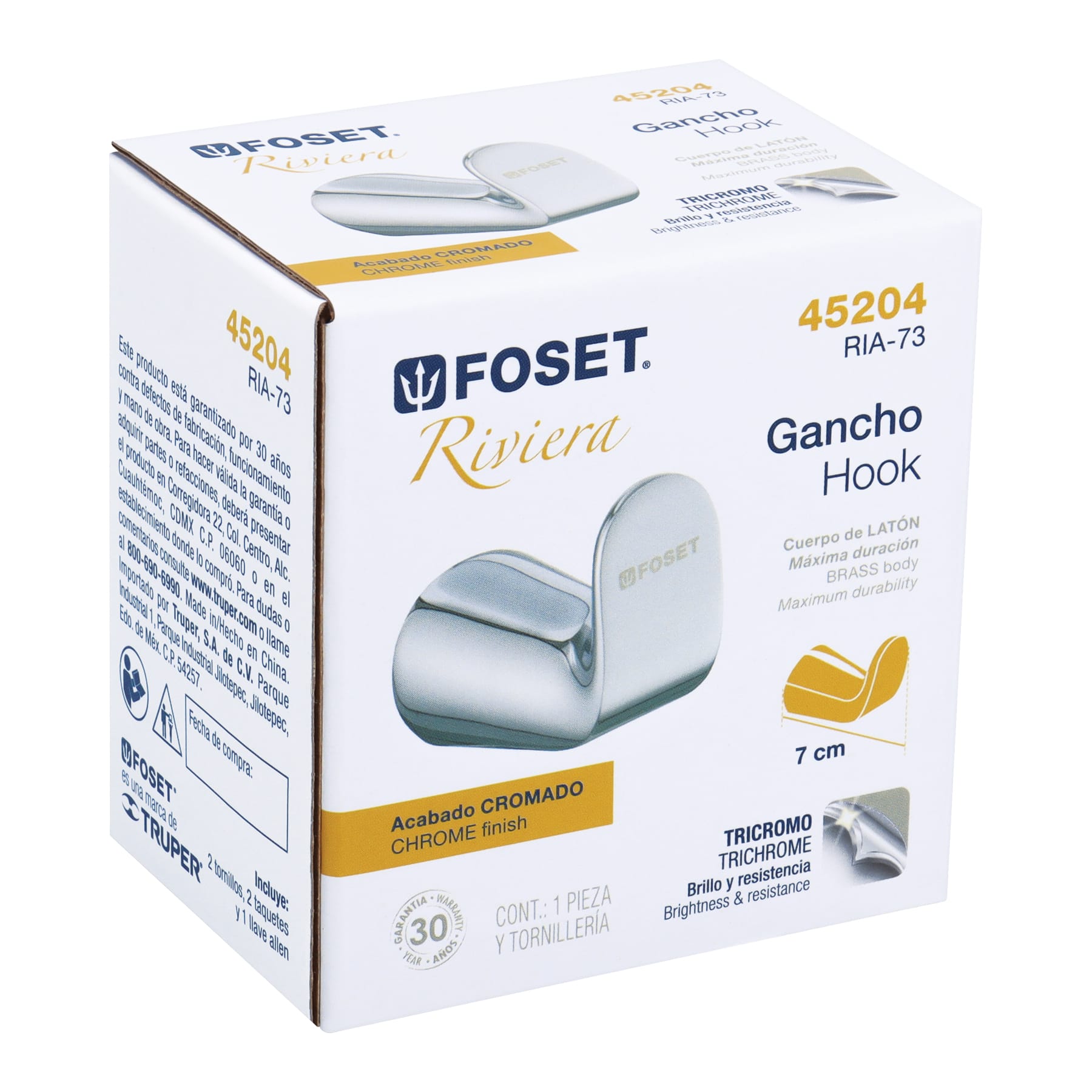 Gancho soporte de latón para máxima duración, Con sistema de montaje para semiempotrar, I52incluye llave allen, taquetes y tornillería para su instalación, alta calidad
