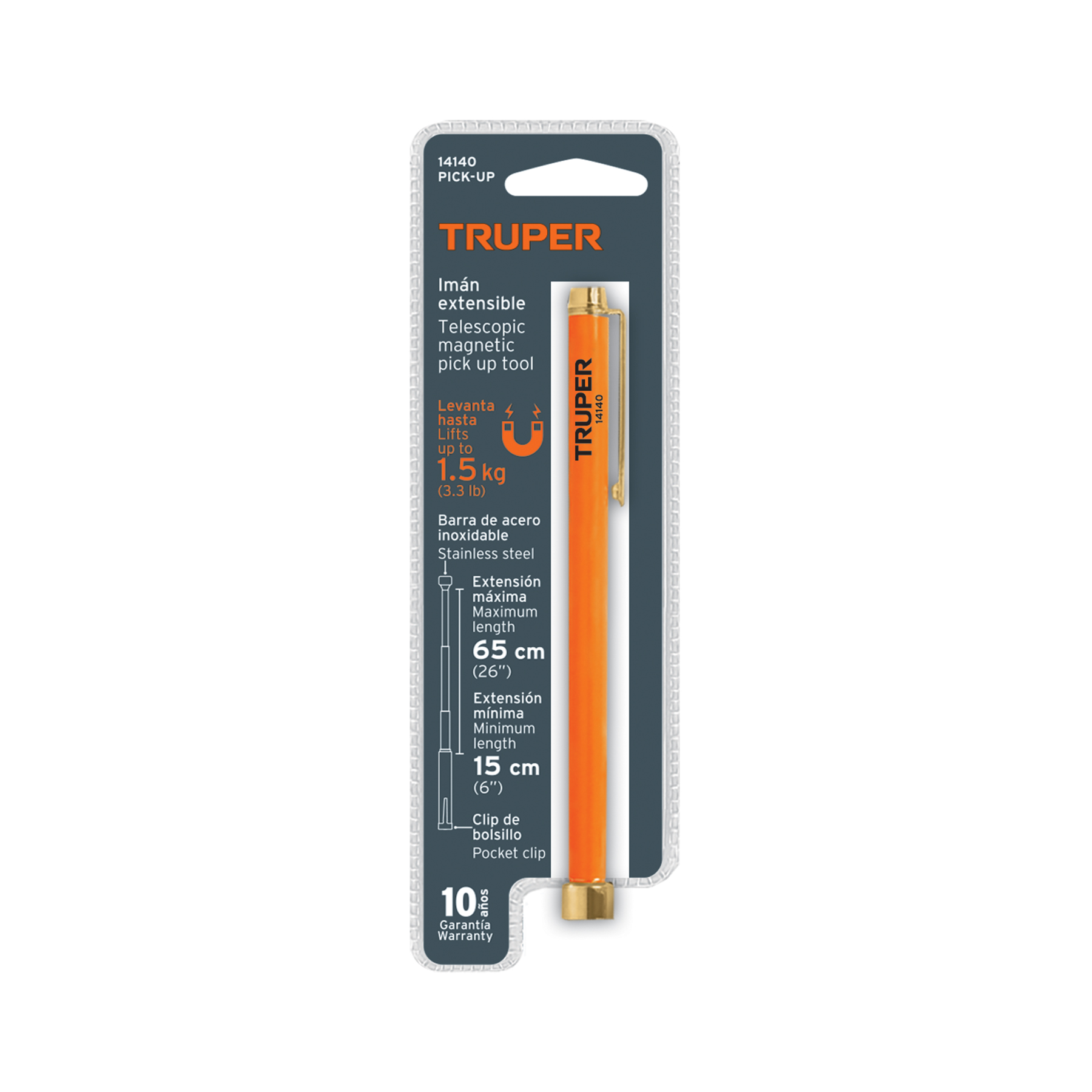 El imán extensible de acero inoxidable de Truper es una herramienta práctica y versátil diseñada para recoger objetos metálicos de difícil acceso. Con una capacidad de carga de 1.5 kg, es ideal para trabajos de mantenimiento, reparación y bricolaje.