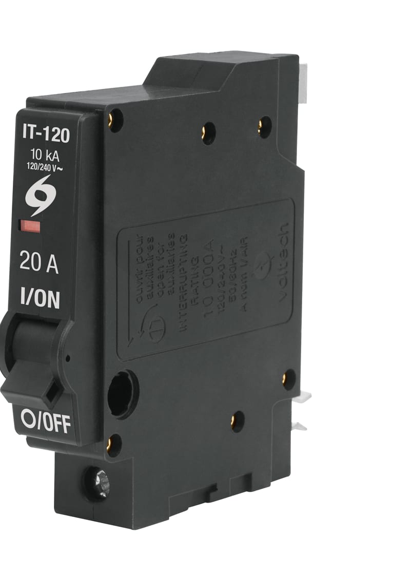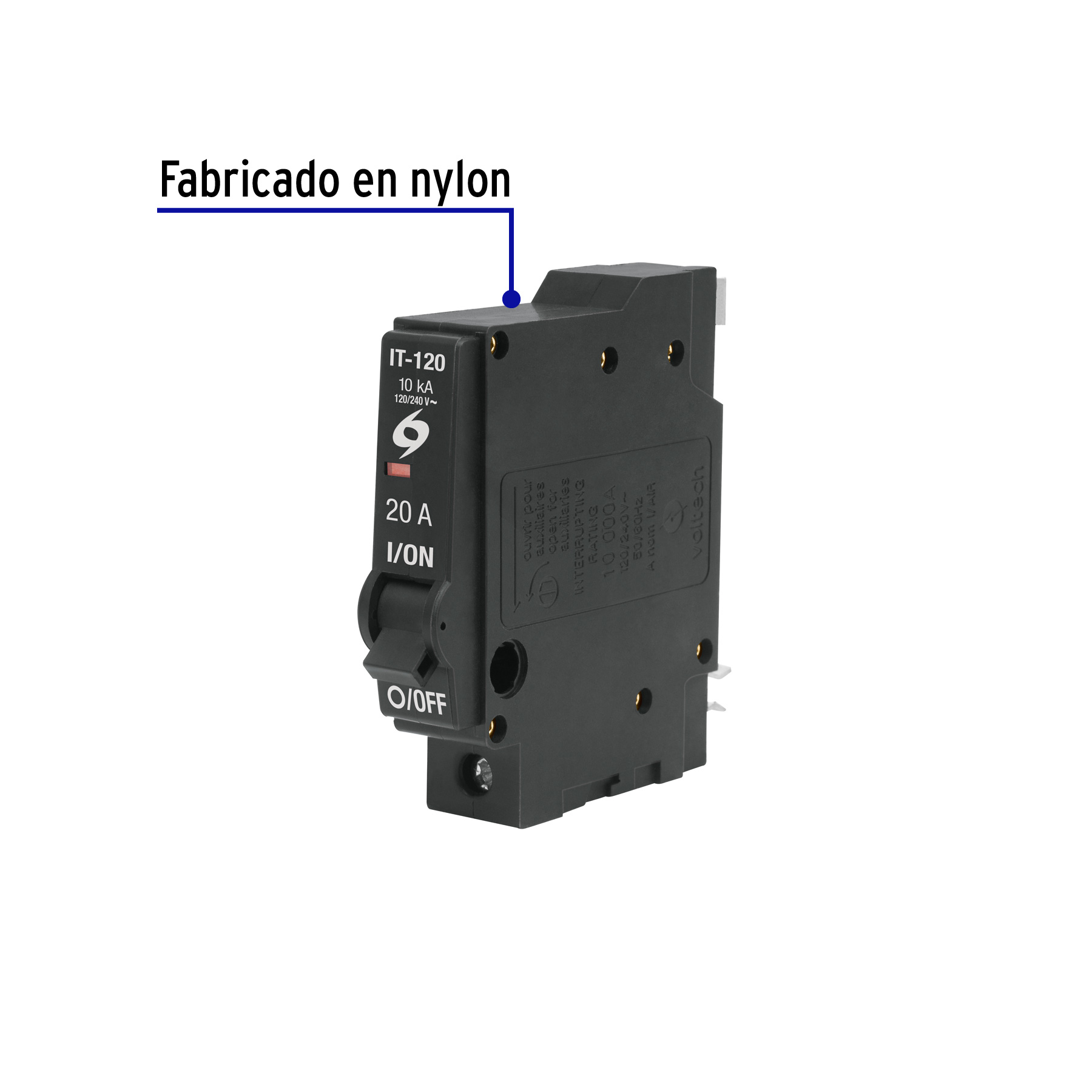 Fabricado en nylon, Línea monofásica , Protege contra sobrecarga y cortocircuito , Compatible con la mayoría de los centros de carga disponibles en el mercado (excepto Square D) , Indicador cromático de estado de interrupción: rojo (energizado) y verde (apagado)