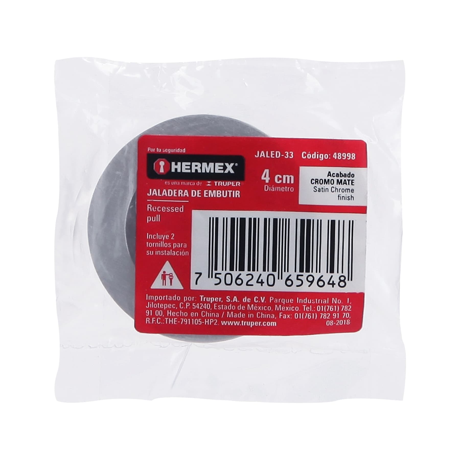 Especificación: Jaladera de embutir circular No. 3 acabado cromo mate