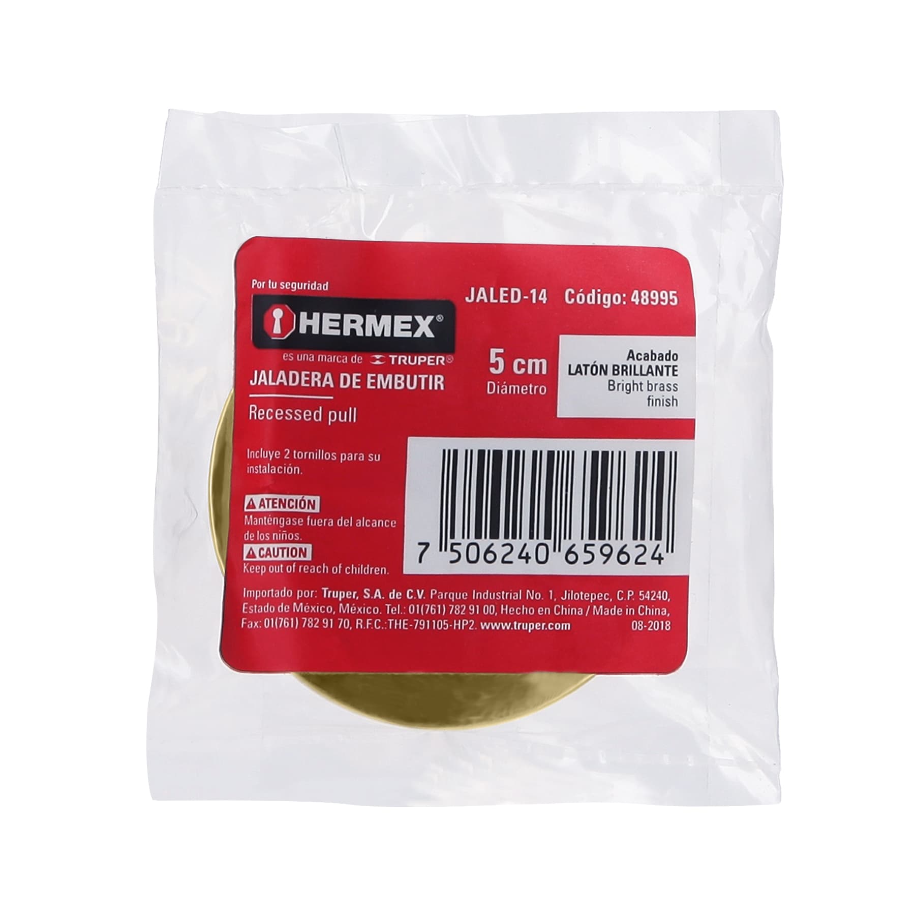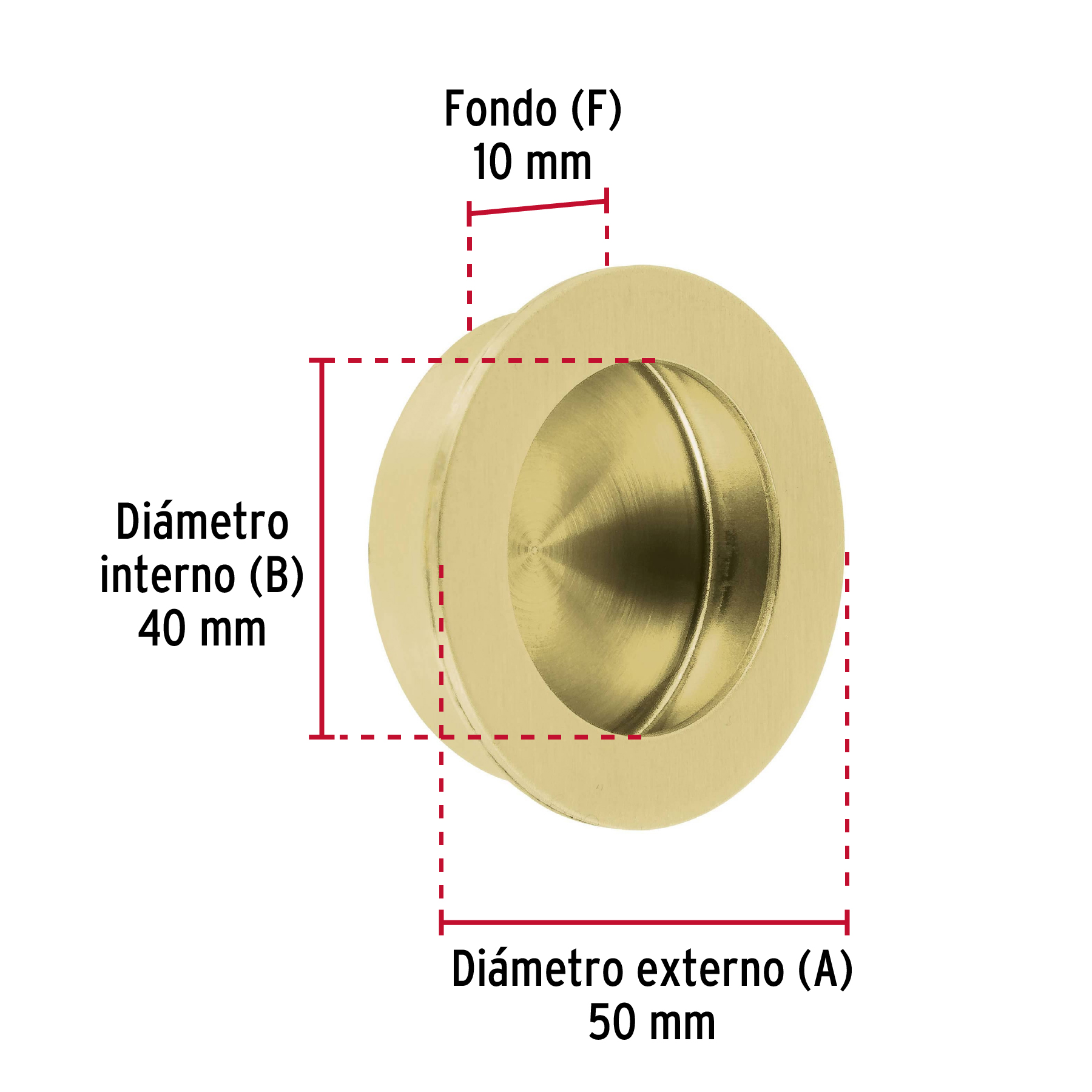 Especificación: Jaladera de embutir circular No. 4 acabado latón brillante