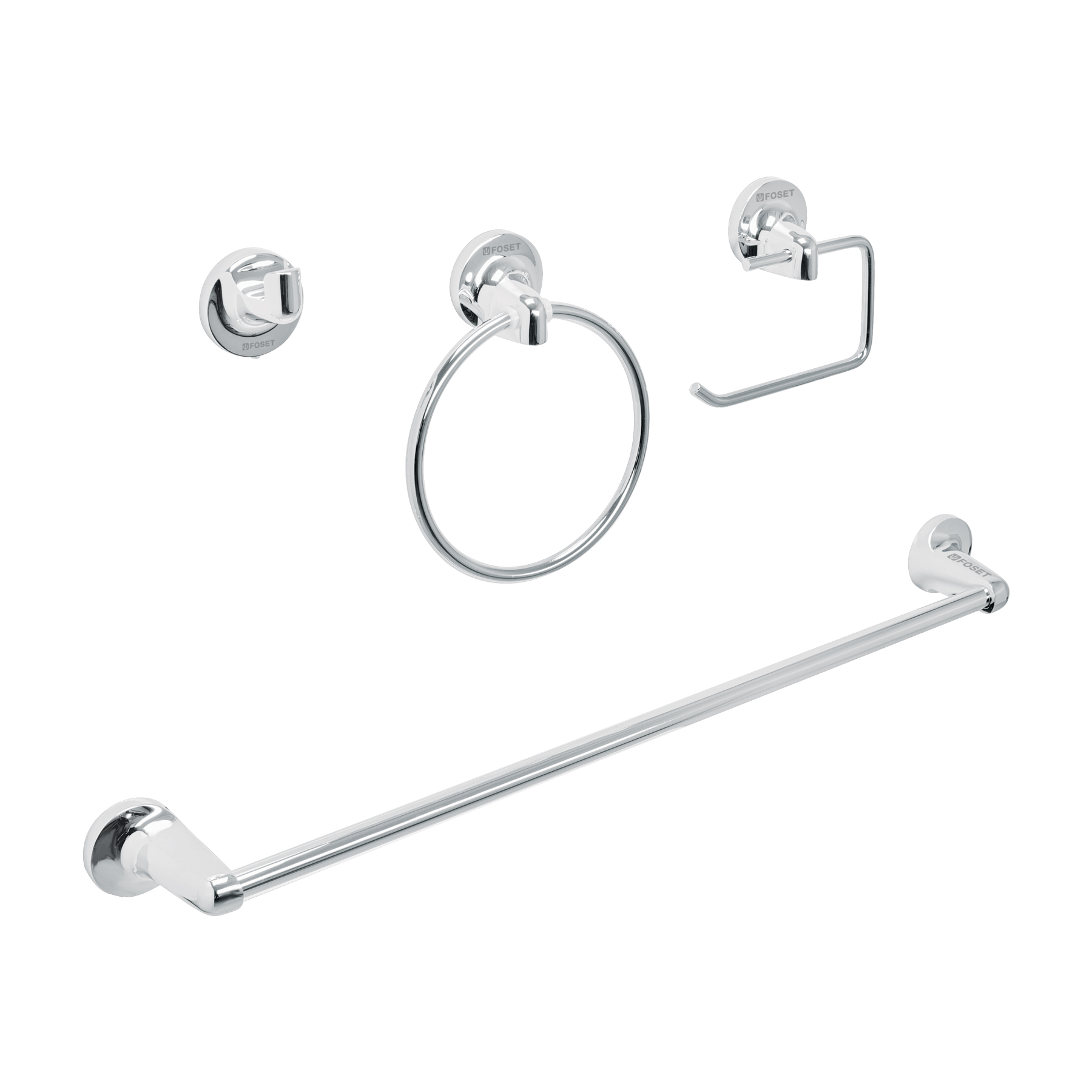 Barra fabricada en acero inoxidable, Vaso de vidrio, Portarrollos con cubierta de acero inoxidable, Con sistema de montaje para semiempotrar