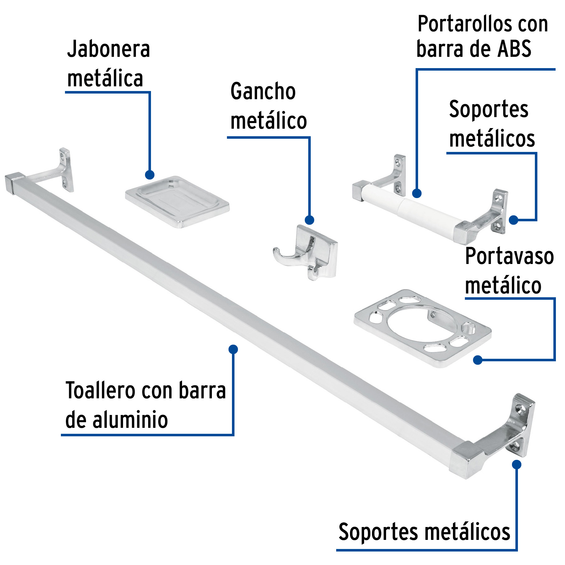 Barra fabricada en aluminio, Portarrollos de ABS, Con sistema de montaje para semiempotrar, alta resistencia