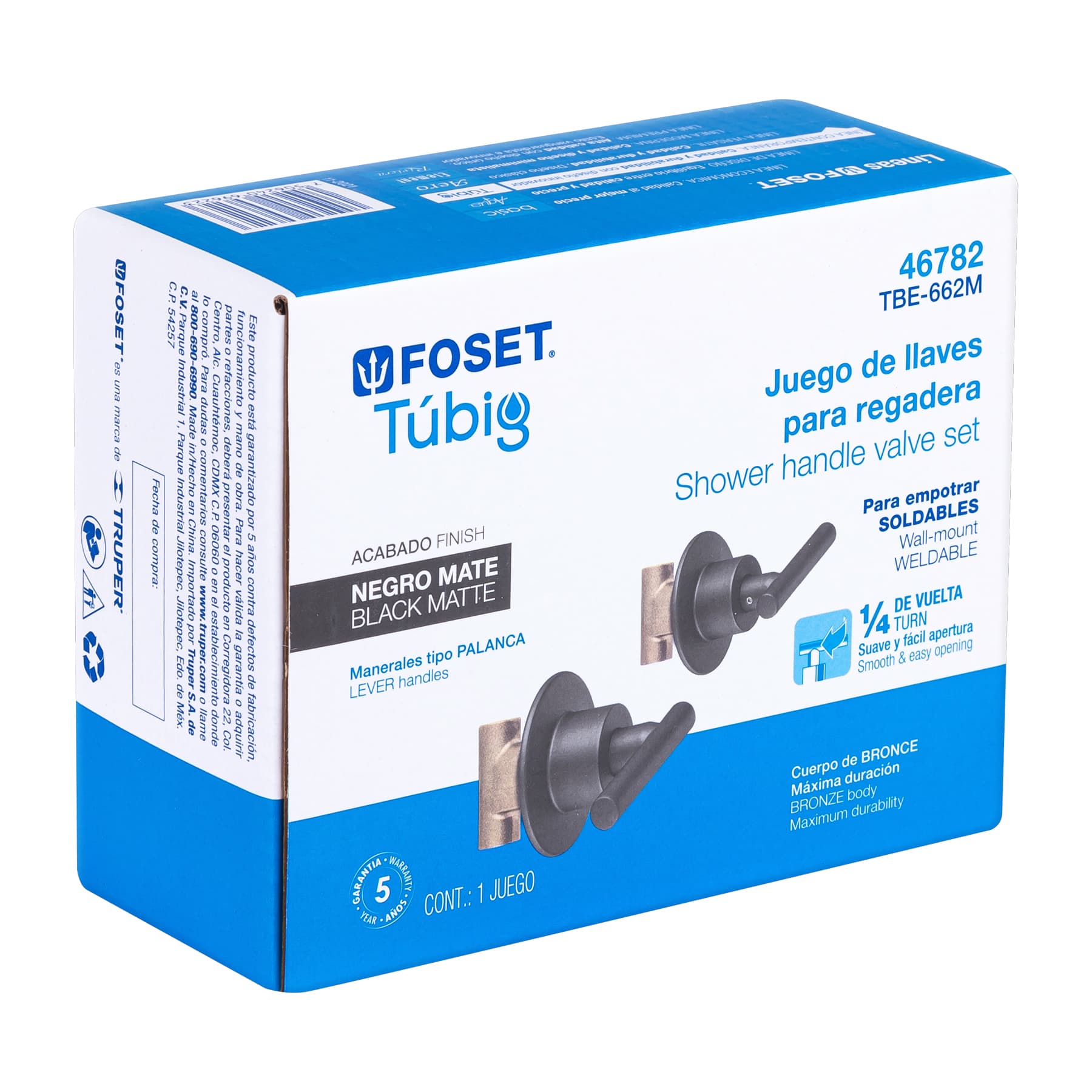 Especificación: Juego manerales palanca, soldables p/regadera, negro, Foset