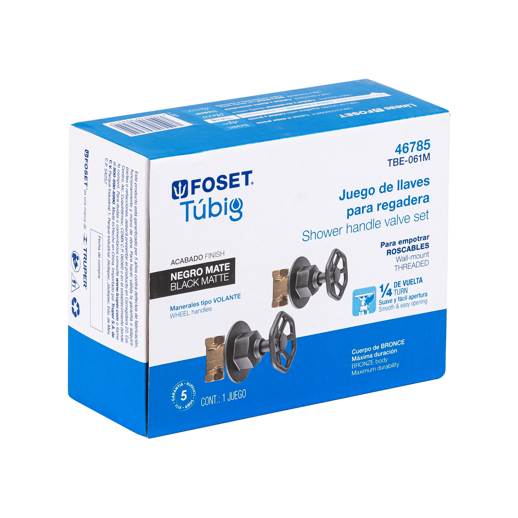 1 Juego manerales redondos, roscables p/regadera, negro, Foset