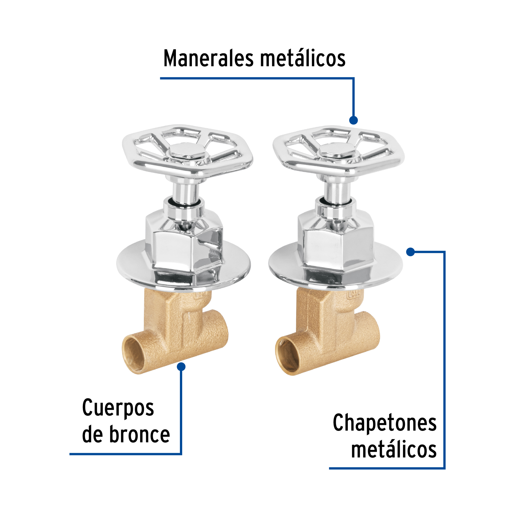 Especificación: Juego manerales redondos, soldables p/regadera, cromo, Foset