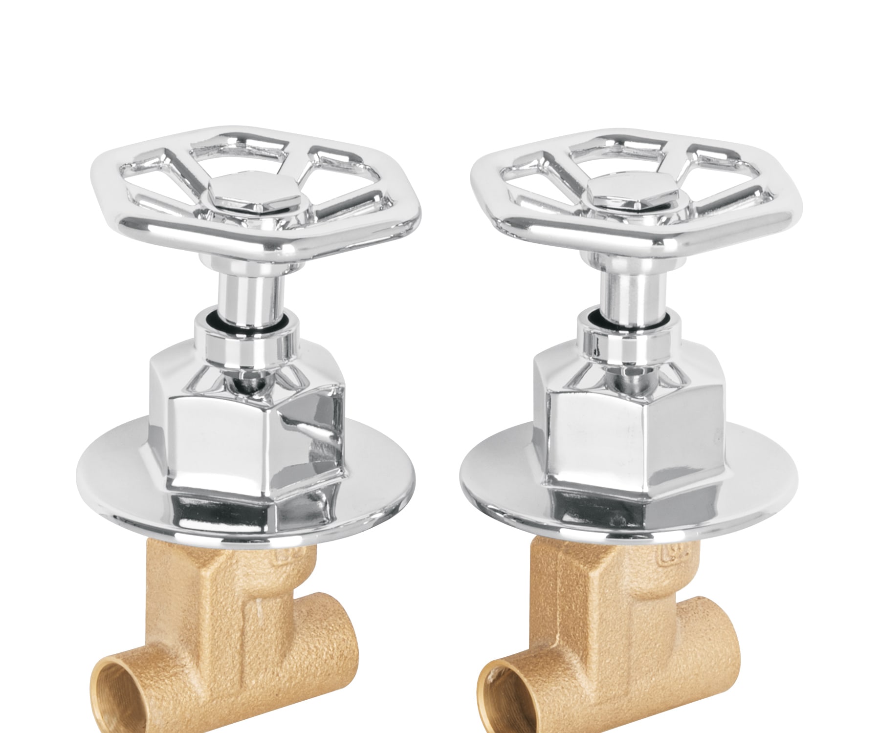 Juego manerales redondos, soldables p/regadera, cromo, Foset