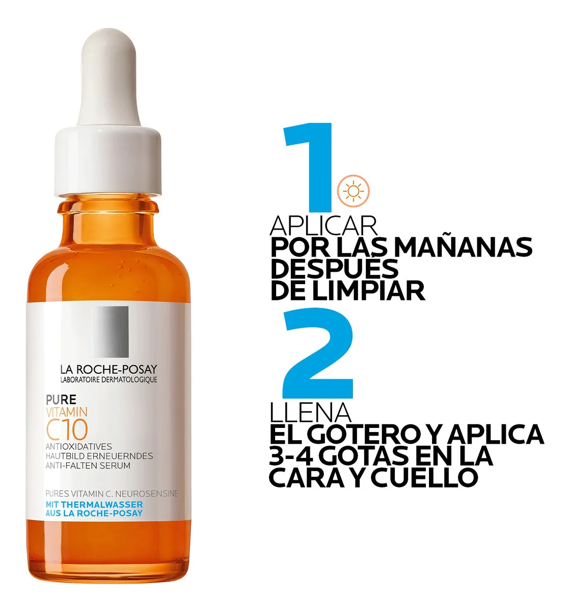 • 10% de Vitamina C pura: Mejora la luminosidad y la textura de la piel, con potente acción antioxidante.