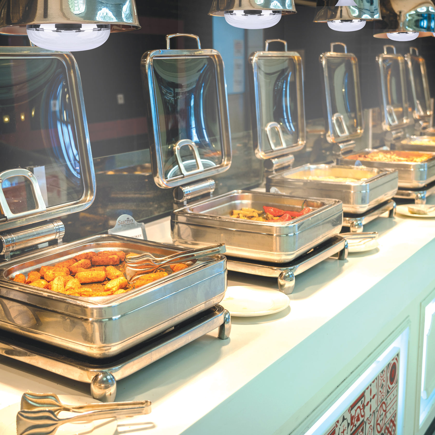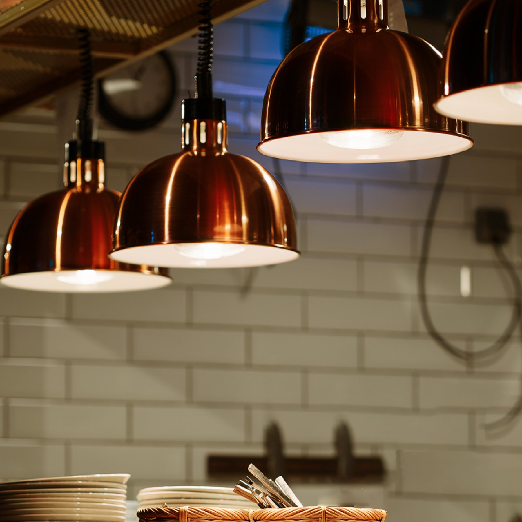 Pantalla de vidrio transparente, Reflector interno que hace más eficiente la transferencia de calor de la luz infrarroja, Omnidireccional, Ideal para mantener la temperatura de los alimentos en restaurantes y calentar espacios cerrados