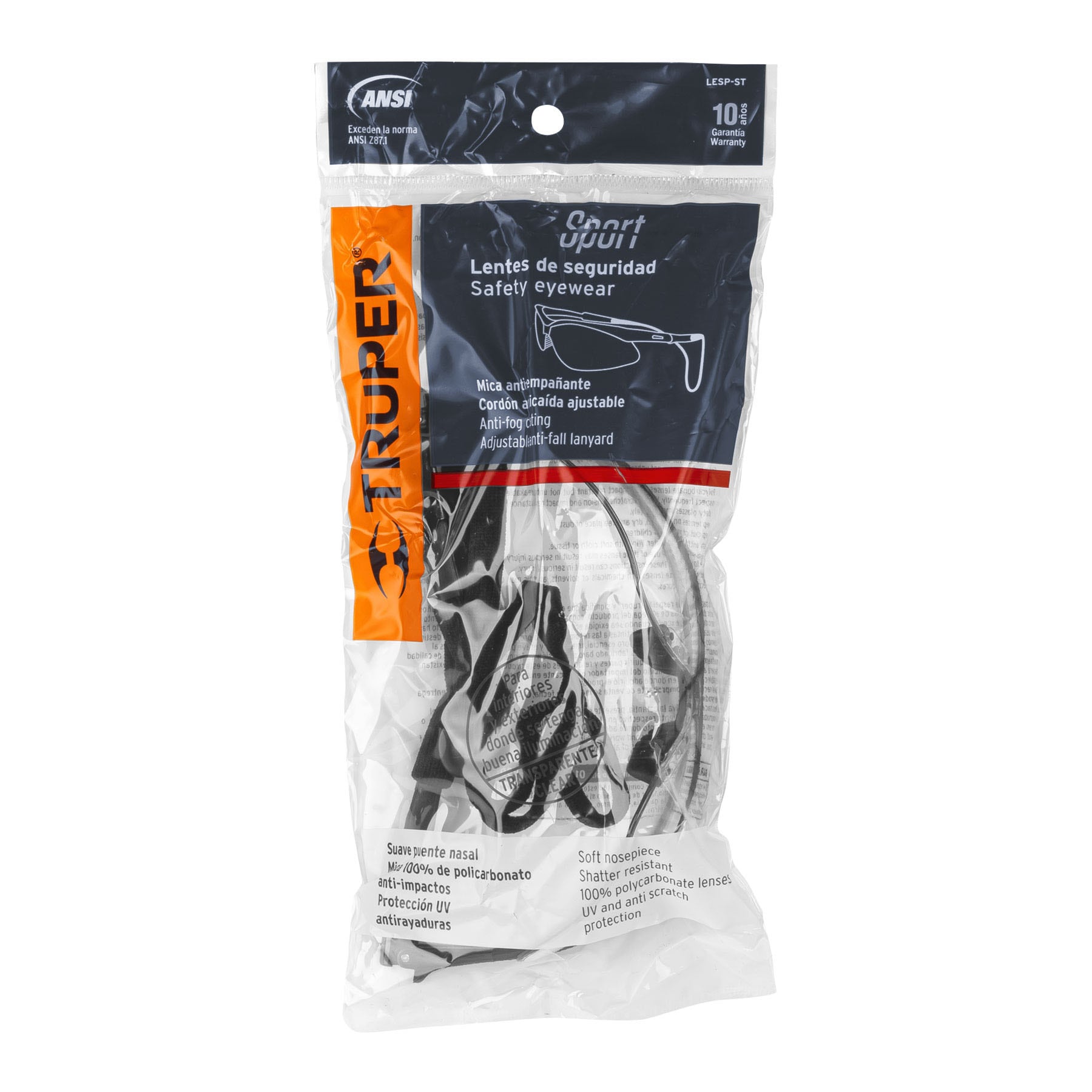 Los lentes de seguridad claros antiempaño Sport ofrecen protección ocular de alta calidad, con un diseño antiempaño que garantiza una visión clara en todo momento. Equipados con cordón ajustable, se adaptan cómodamente a cualquier tamaño de cabeza, asegurando un ajuste seguro durante largas jornadas de trabajo. Perfectos para trabajos industriales, mantenimiento o actividades al aire libre, estos lentes proporcionan protección confiable contra impactos, polvo y partículas voladoras. Con Truper, obtienes seguridad y comodidad en cada tarea. ¡Protege tus ojos sin perder visibilidad!