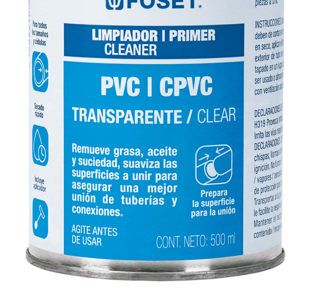 Remueve grasa, aceite y suciedad, Suaviza las superficies a unir para asegurar una mejor unión de tuberías y conexiones, Para preparar superficies antes de aplicar el cemento o pegamento, Ideal para limpiar tuberías y conexiones de PVC y CPVC