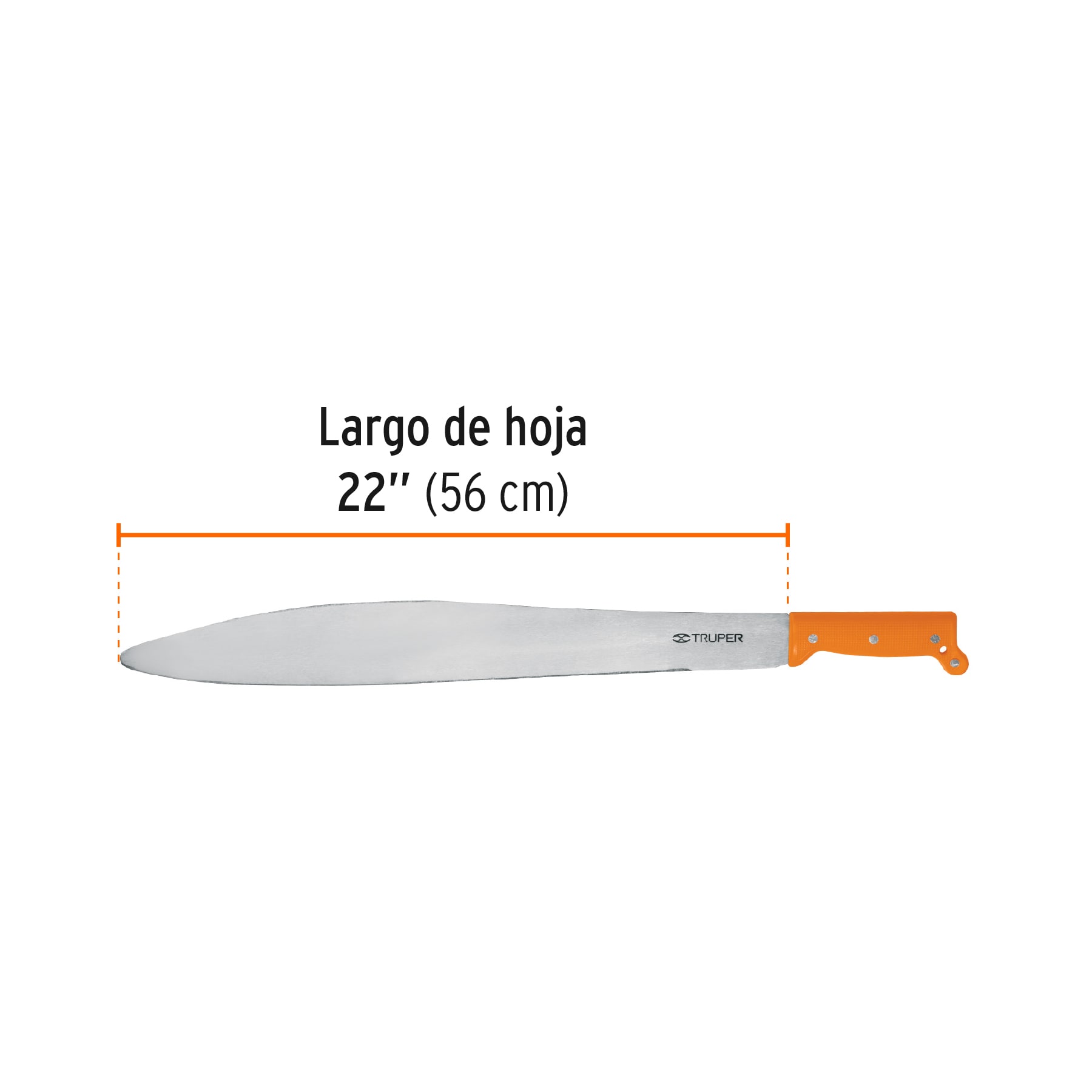 Especificación: Machete acapulqueño de 22′ cacha naranja, Truper