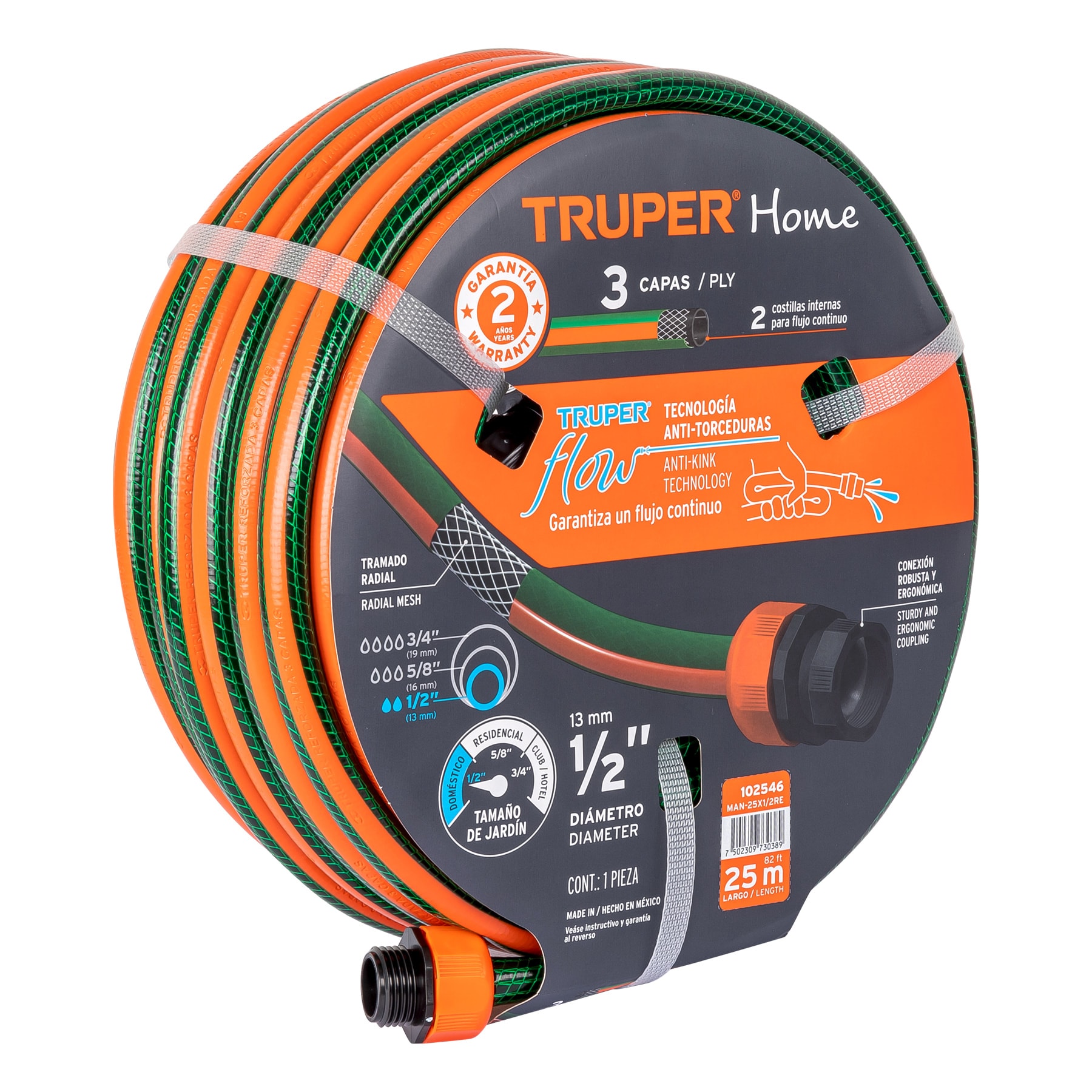 La Manguera 1/2″ reforzada 3 capas 25 m conexiones plásticas es una excelente opción para quienes buscan una manguera resistente, duradera y versátil para sus necesidades de riego y uso doméstico. Su diseño de 3 capas reforzadas la hace resistente a la alta presión, a la abrasión y a las torceduras, mientras que sus conexiones plásticas facilitan la instalación y el uso.
