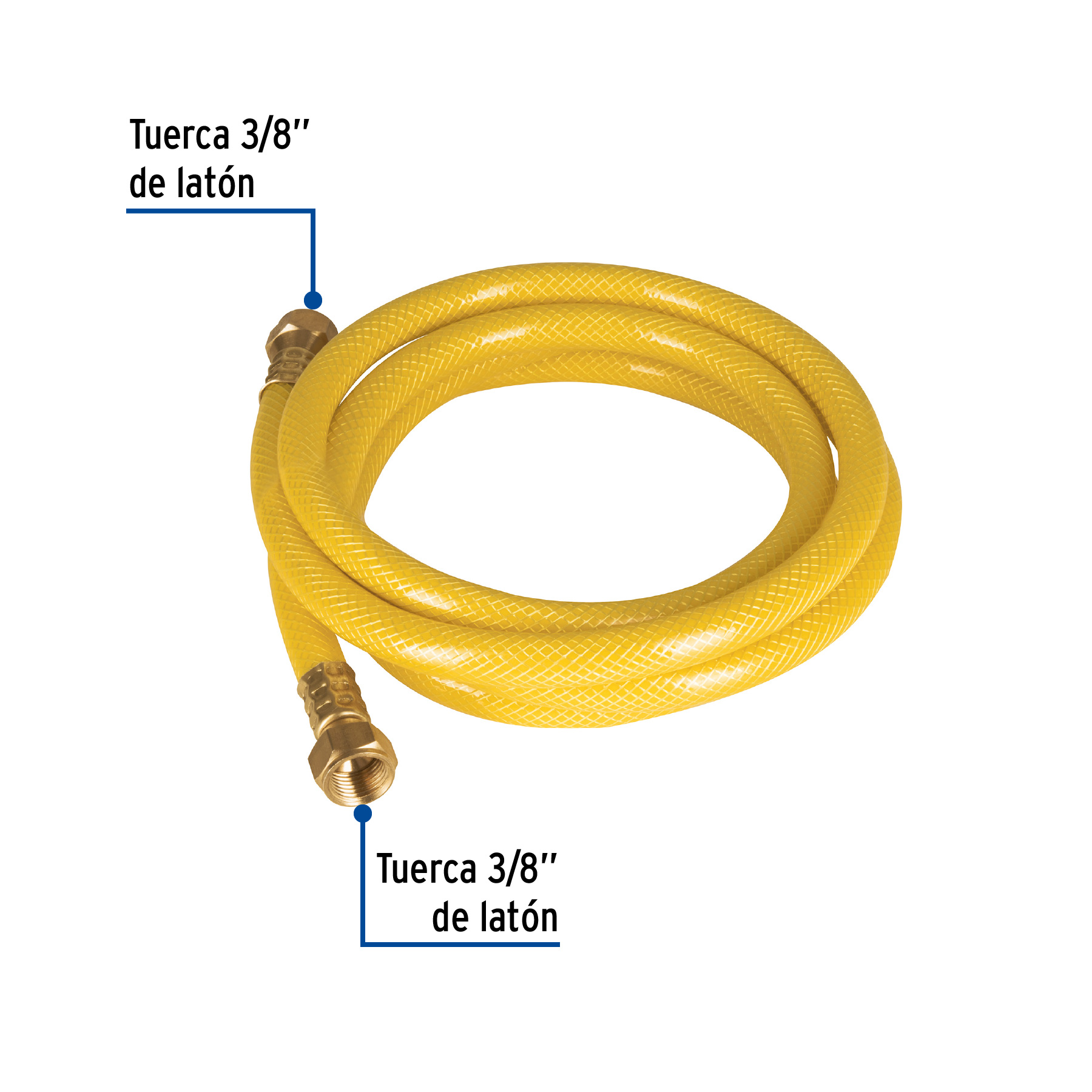 Conectores de latón de 3/8″ x 3/8″, Manguera con 3 Capas fabricadas en PVC, Material autoextinguible, Para manejo de gas LP o gas natural