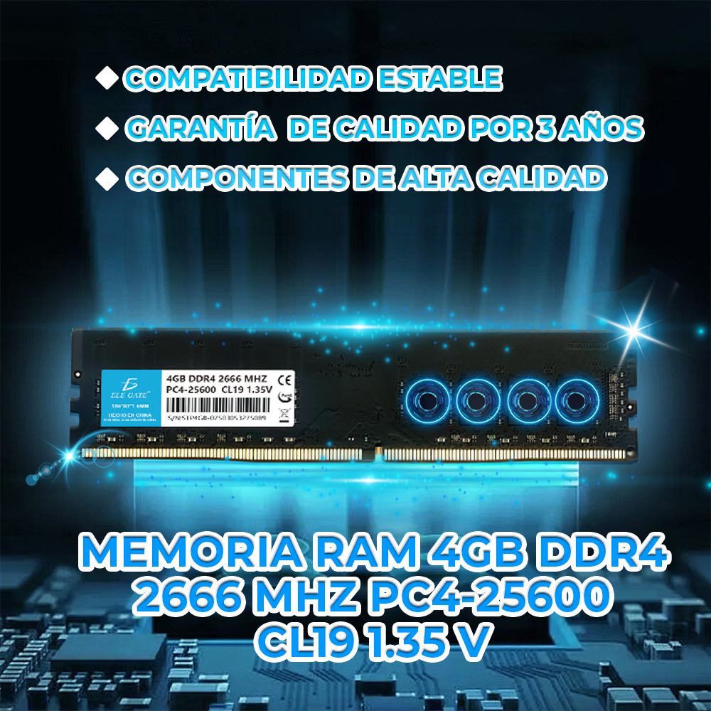 Aumenta el rendimiento de tu equipo con la Memoria DDR4 4GB 2666 MHz PC4-25600 CL19. Con una velocidad de 2666 MHz y un ancho de banda de 3.2GBps, esta memoria RAM es perfecta para tareas exigentes como multitarea, juegos y edición de contenido. Su voltaje de 1.35V asegura un funcionamiento eficiente y estable, mientras que sus dimensiones de 135*30*1.5mm ofrecen una compatibilidad máxima con una amplia gama de placas base. Con componentes de última tecnología, experimenta un rendimiento rápido y confiable en tu PC o laptop.