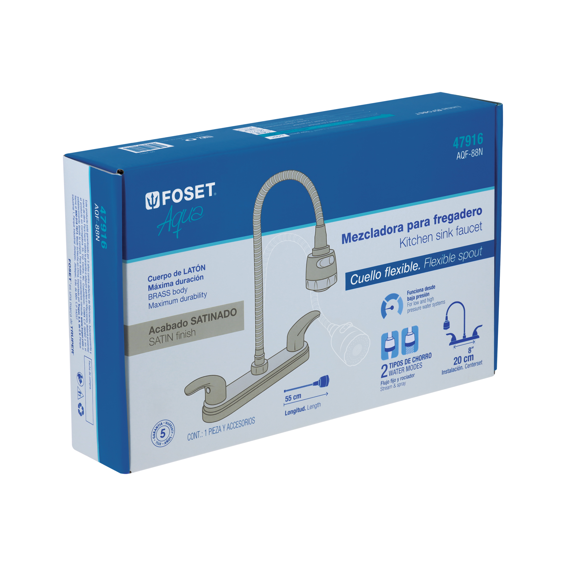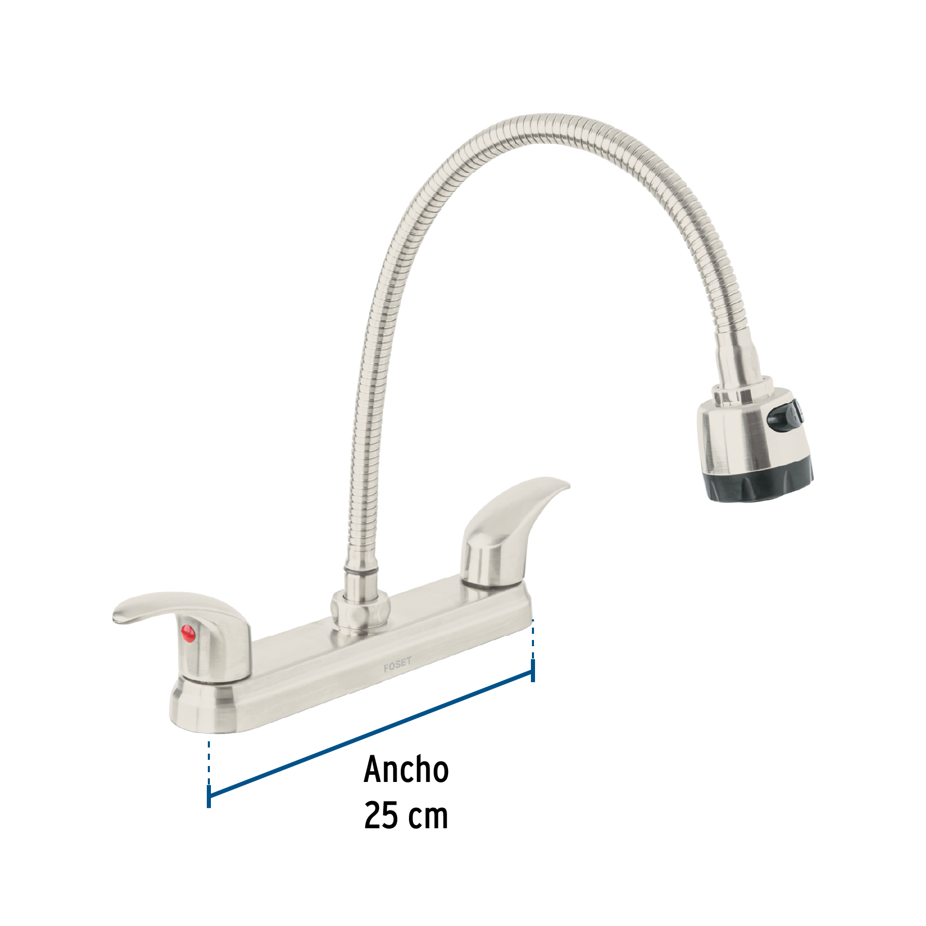 Especificación: Mezcladora 8′ p/fregadero, flexible, palanca, satín, Aqua
