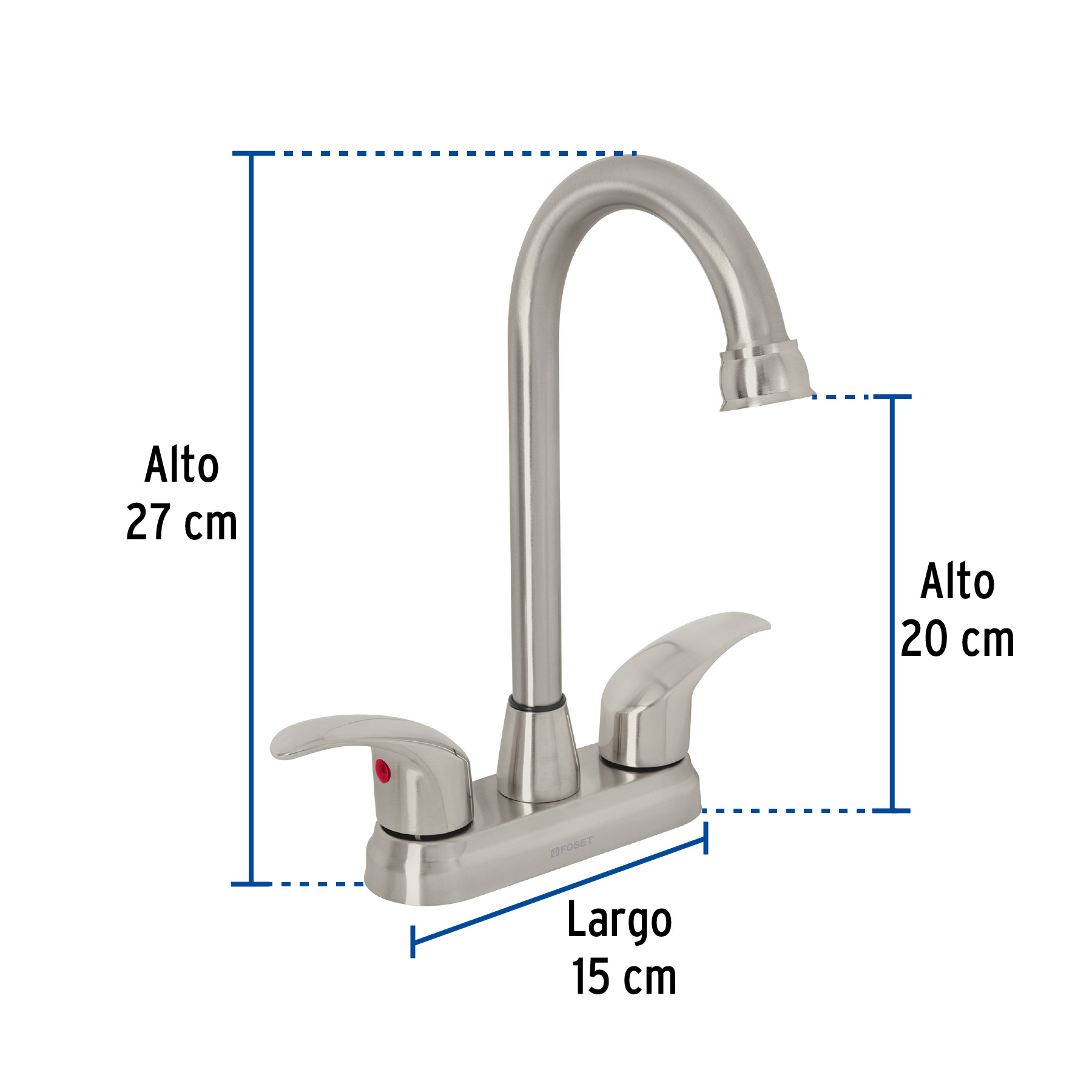 Cuerpo de latón para máxima duración, Manerales metálicos tipo palanca, Cuello y cubierta de acero inoxidable, Cartucho cerámico de suave y fácil apertura
