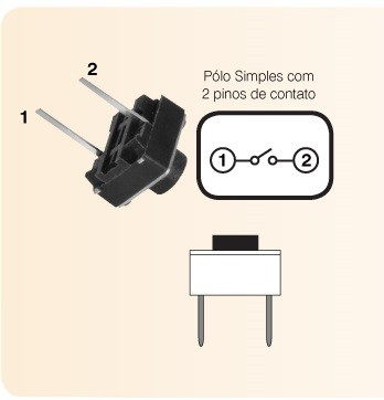 • Microswitch de tipo Push-Button de 2 terminales, con activación al presionar (normalmente abierto)