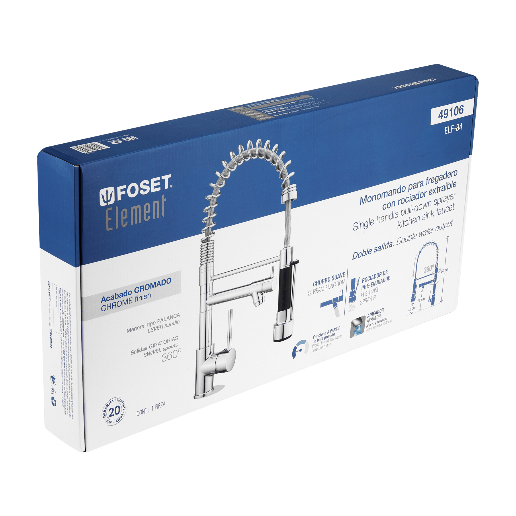 Cuerpo de latón con acabado cromo para máxima duración, Cuello flexible de 65 cm de acero inoxidable, Manerales metálicos, Cartucho cerámico de suave y fácil apertura