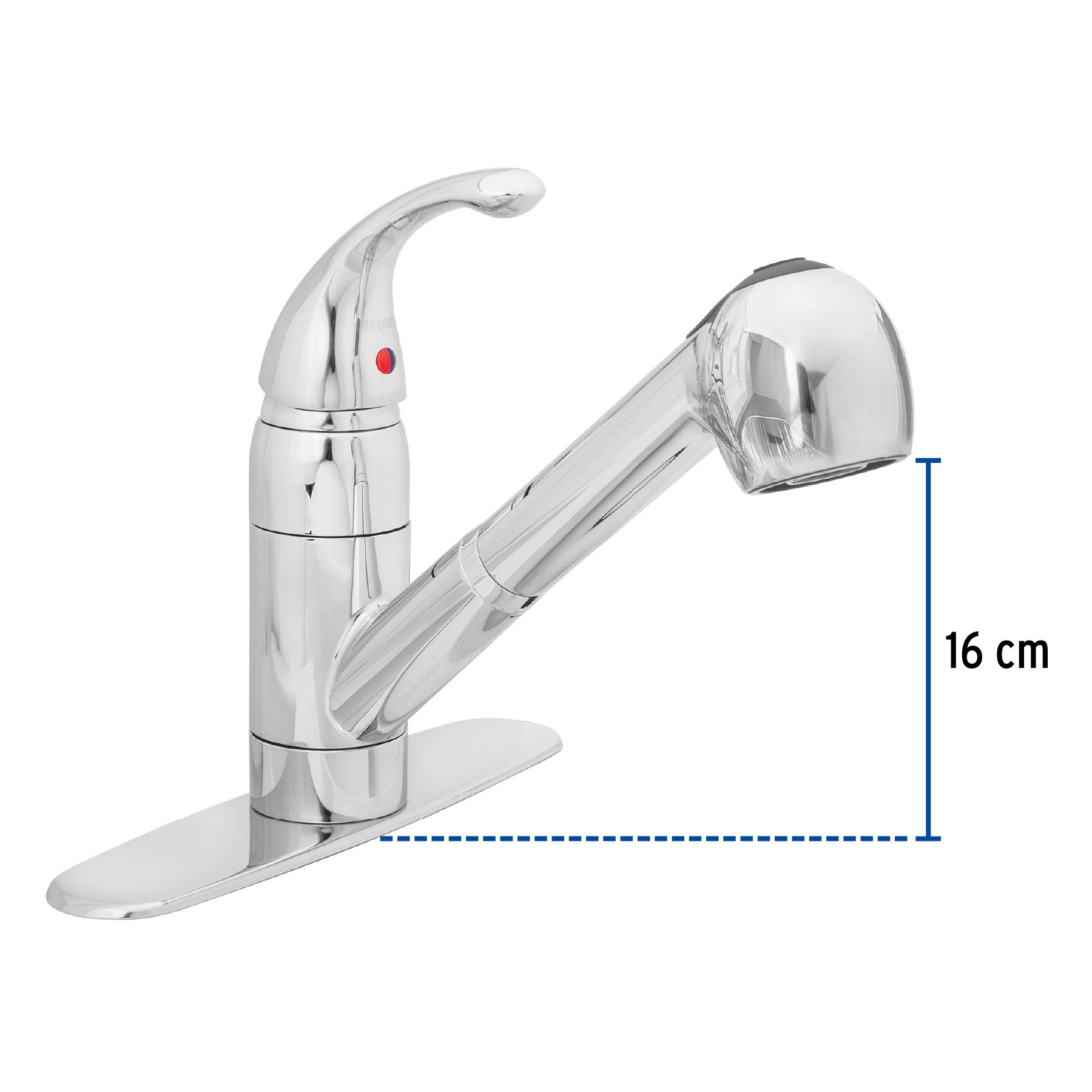 Cuerpo metálico, Cuello de ABS que evita la oxidación, Maneral metálico y cubierta de acero inoxidable, Nariz retráctil con manguera de TPR/PET, Tubos conexión de cobre