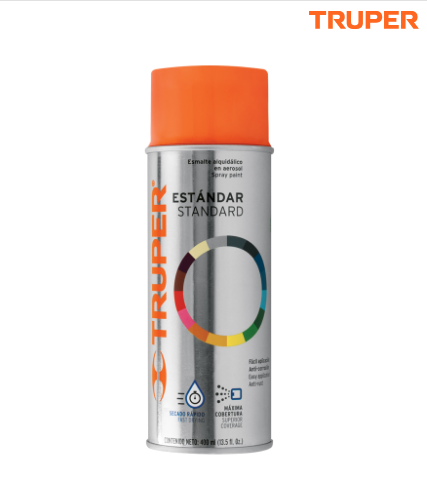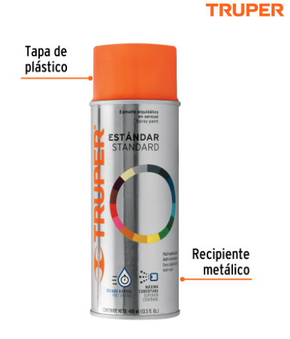 La Pintura en Aerosol Naranja, Bote Tradicional, 400 ml de Truper es una pintura versátil y de alta calidad ideal para proteger, decorar y restaurar una gran variedad de superficies.