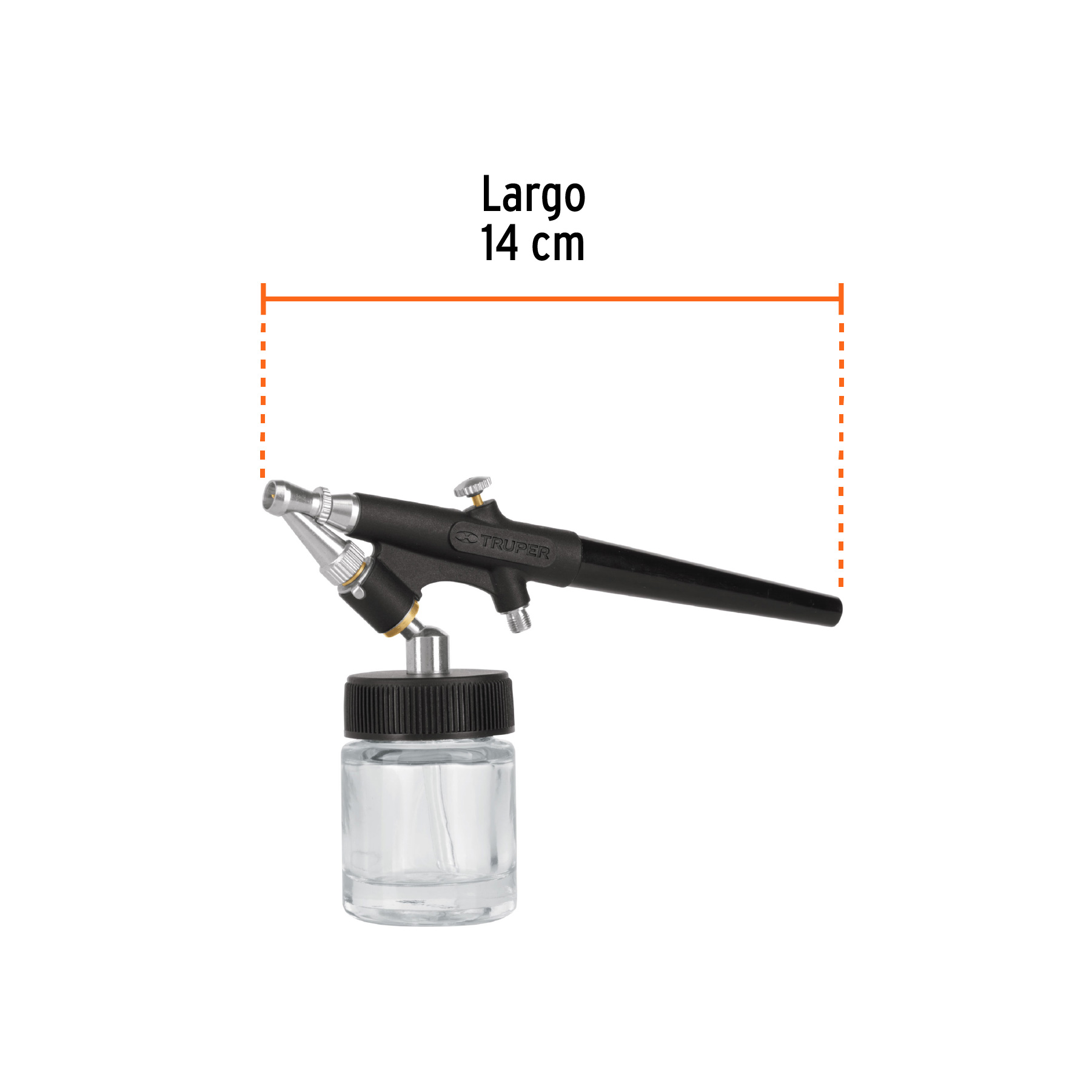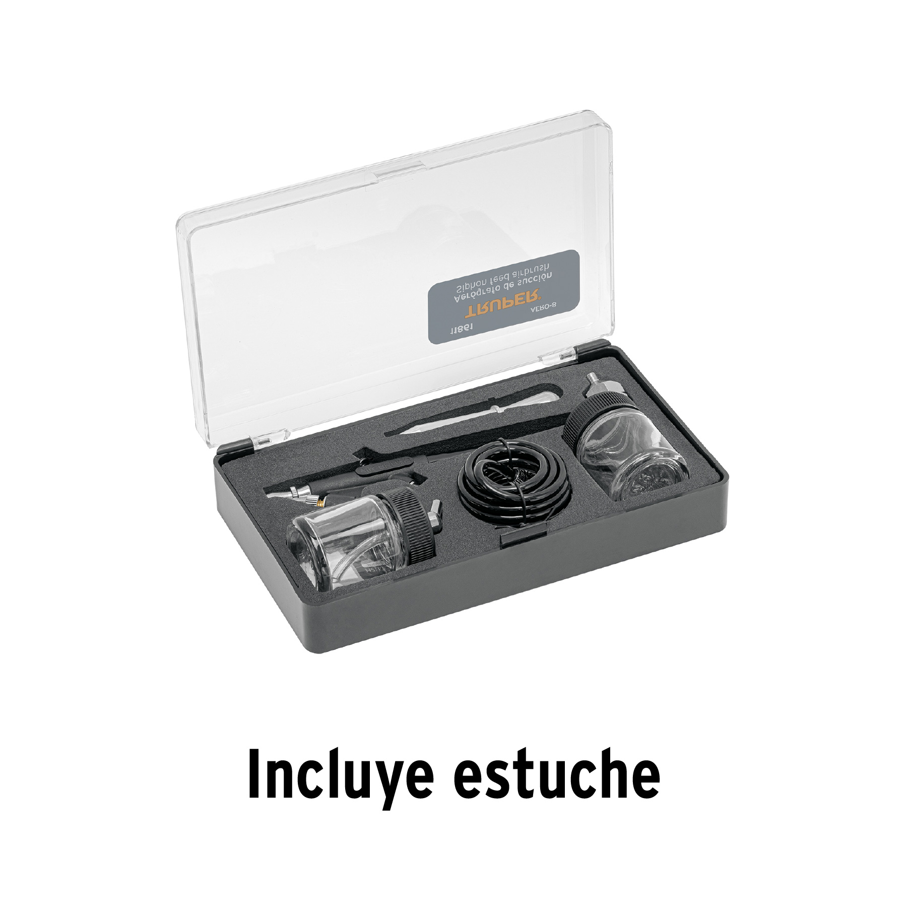 La pistola aerográfica de succión Truper cuenta con un conector 10-48-UNS para manguera, lo que garantiza una conexión segura y estable. Su diseño incorpora depósitos independientes, permitiendo un cambio rápido y eficiente de colores durante el proceso de pintado.