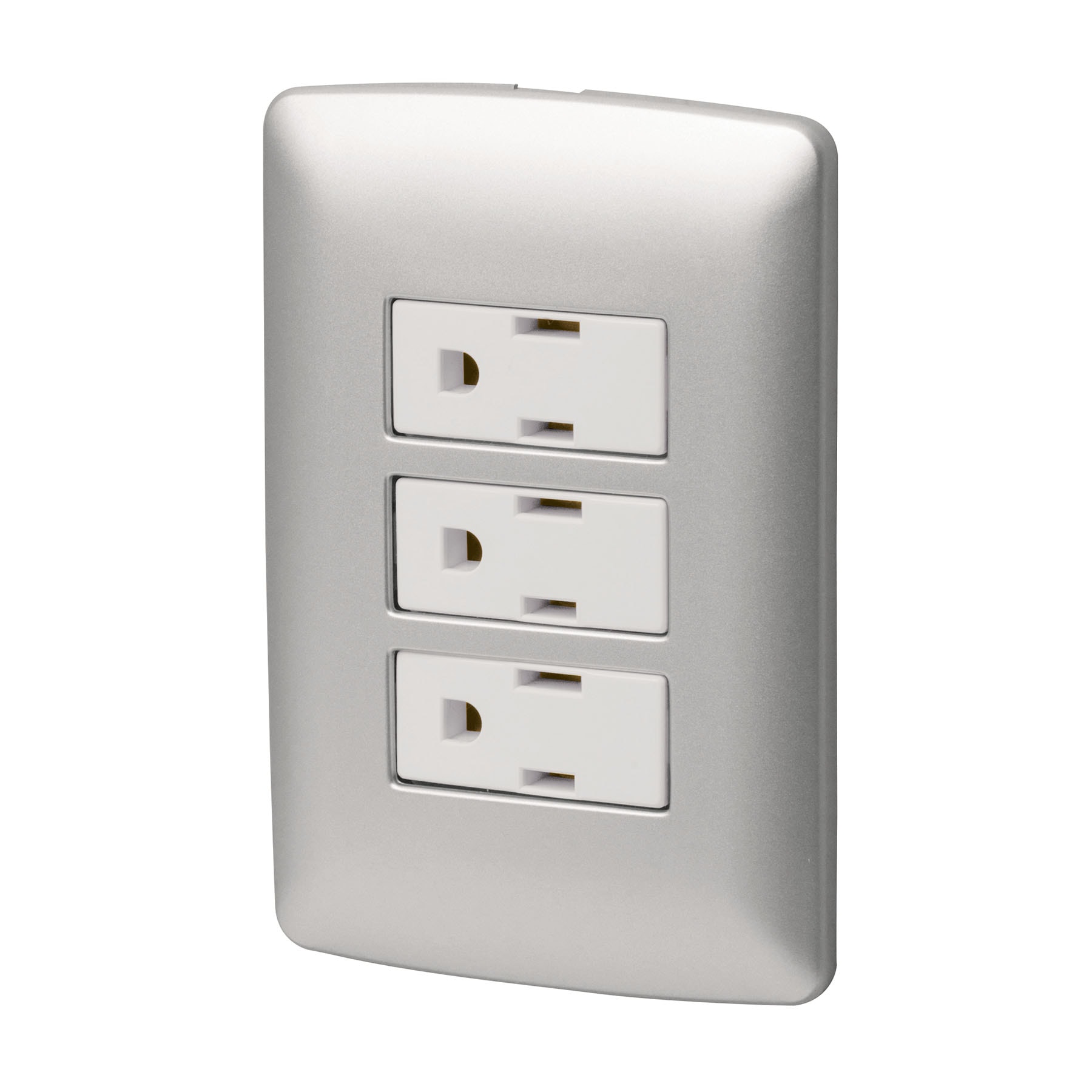 Placa de ABS, contactos e interruptor de polipropileno y policarbonato, 3 Contactos con retardante a la flama para mayor seguridad, alta calidad, alta resistencia