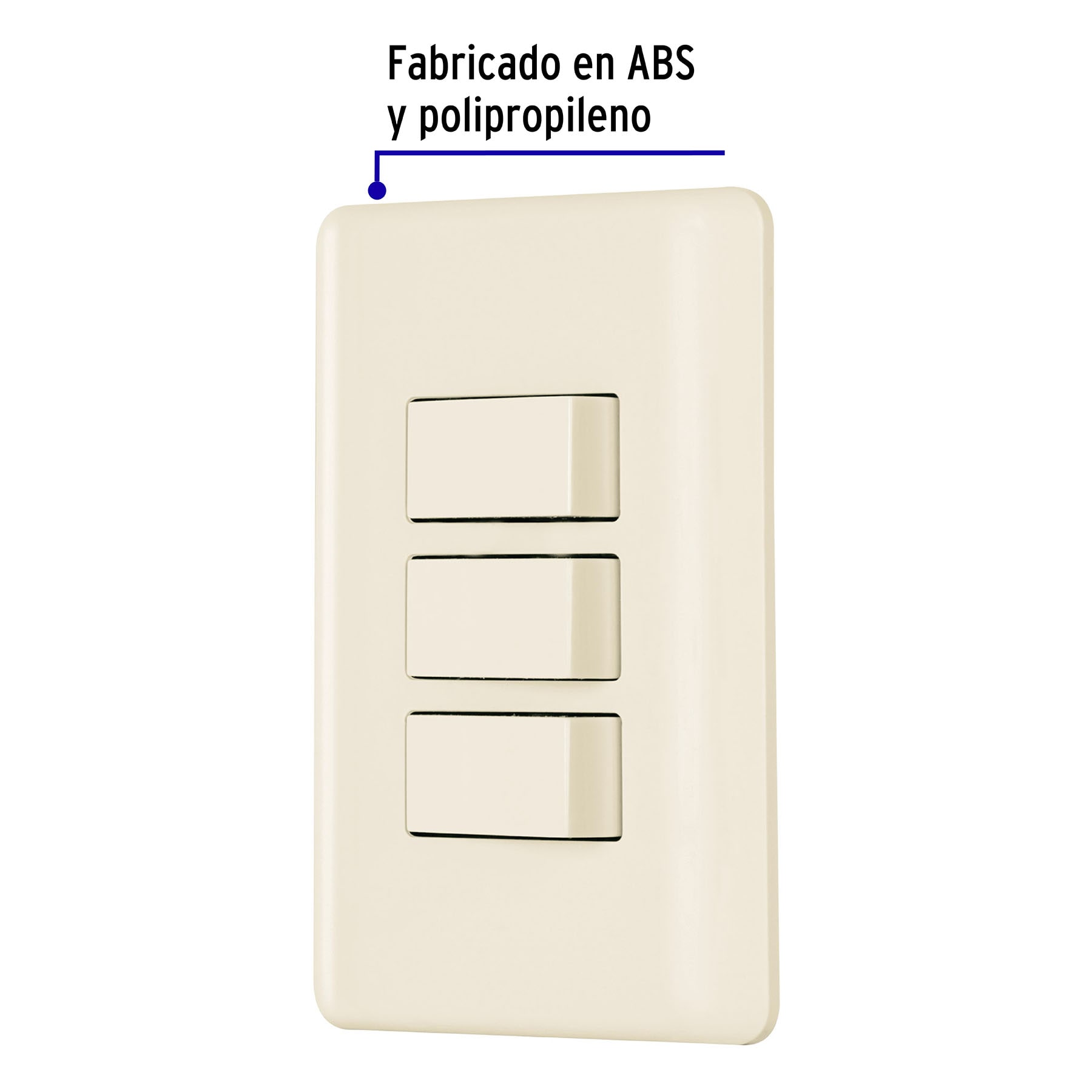 Especificación: Placa armada 3 interruptores, marfil, Volteck