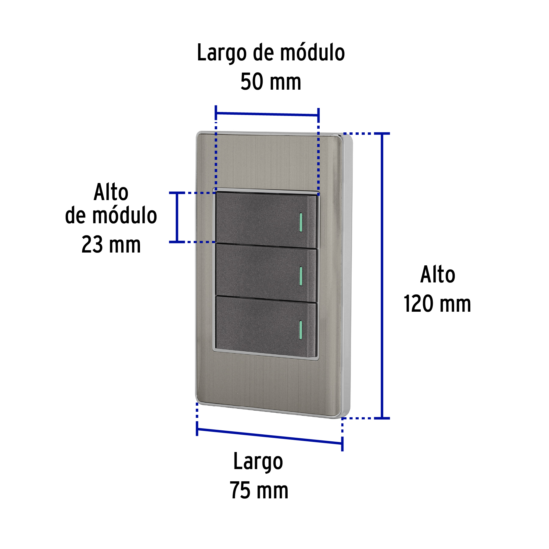 Especificación: Placa armada acero inox 3 interruptores 1 módulo, Lisboa