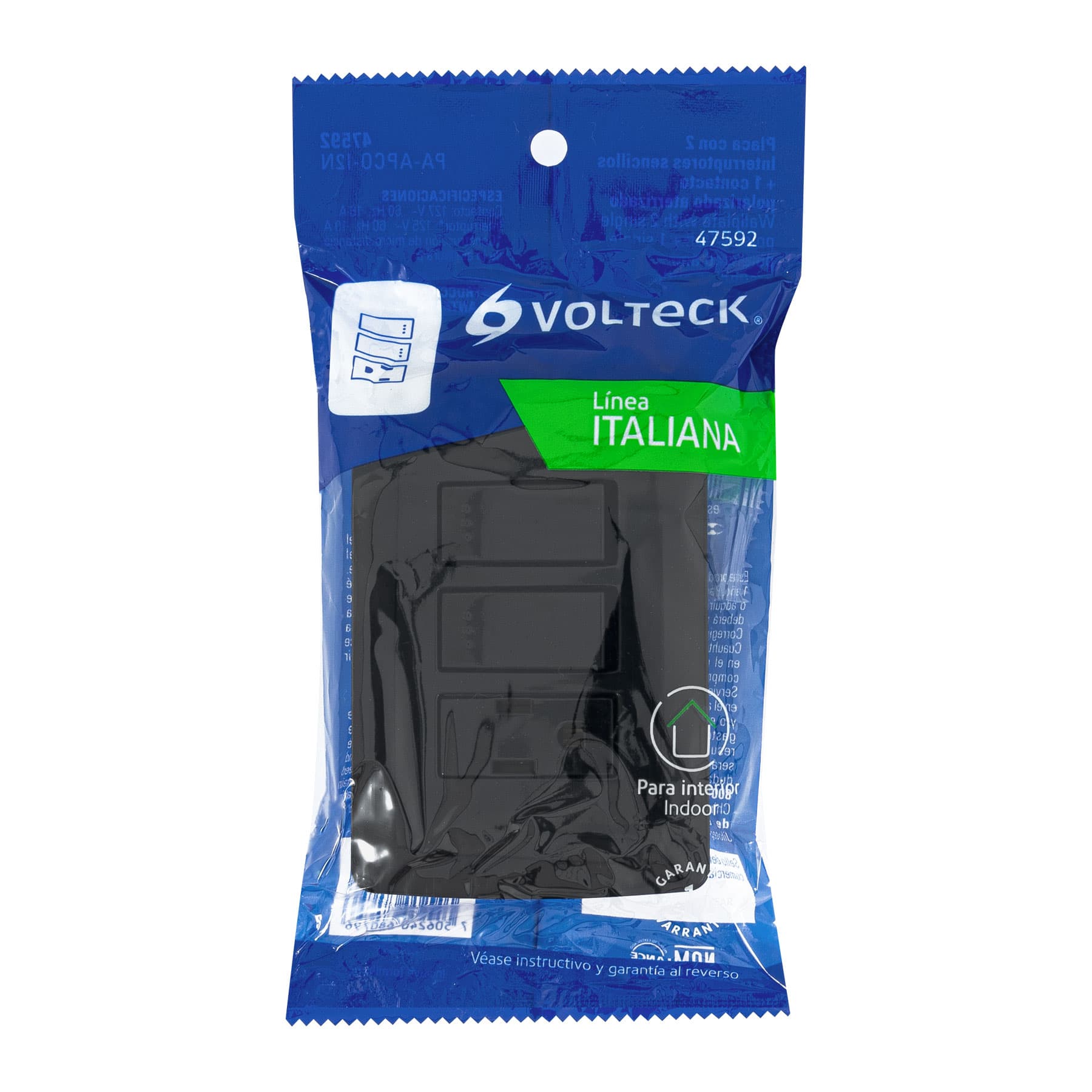 Placa de ABS, contacto e interruptor de polipropileno y policarbonato, 2 Interruptores y 1 contacto con retardante a la flama para mayor seguridad, para interior, incluye tornilleria