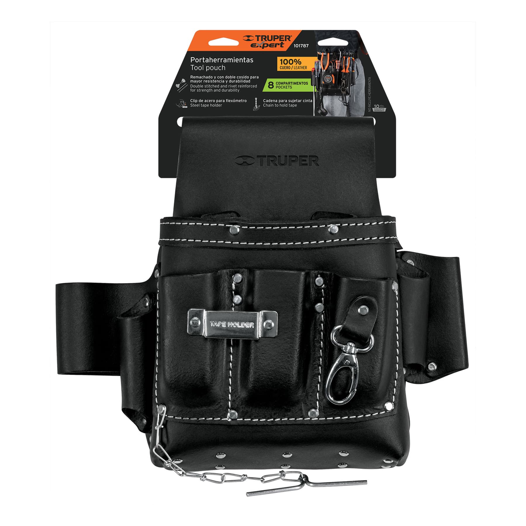 Especificación: Porta herramientas de carnaza, 13 compartimentos, Expert