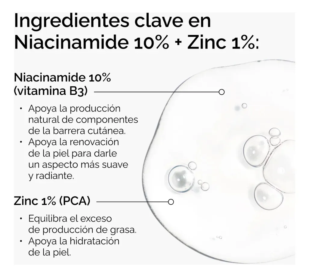 Especificación: Serum Facial The Ordinary Niacinamida 10%+Zinc Dermoconsejado Antiedad Piel Luminosa | 30ml